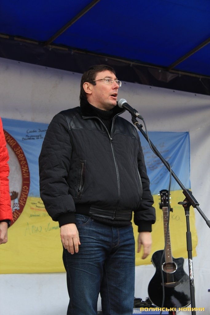 Так, від опозиціонерів та активістів майдану, присутніх сьогодні на заході, лунали заклики долучитися до загонів народних охоронців.Нагадаємо, поповнити лави народної самооборони закликав волинян і лідер ініціативи «Третя Українська Республіка» Юрій Луценко. Він закликав волинських чоловіків приєднуватись до рядів самооборони, а жінок щиро їх підтримувати..