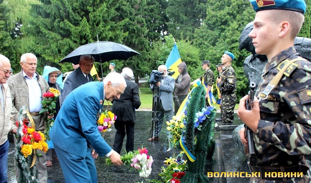 Заступник Луцького міського голови Тарас Яковлев звернувся до всіх присутніх, і наголосив, що в цей день пам’яті потрібно схиляти голови перед всіма солдатами Волині - як перед вояками радянської армії, ОУН-УПА, так і перед тими, хто сьогодні відав своє життя за Україну.«Прошу усіх хвилиною мовчання вшанувати загиблих воїнів-українців. Згадаймо ветеранів Другої Світової війни й українських солдатів, які сьогодні загинули на полі бою», - говорить Тарас Яковлев.