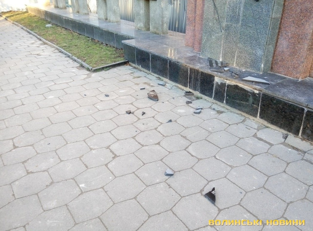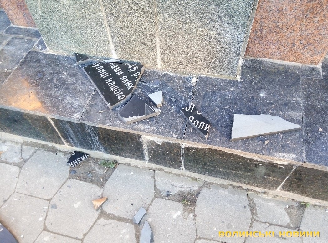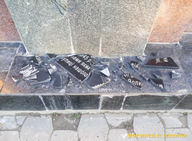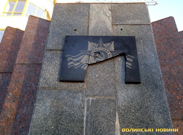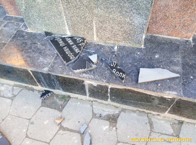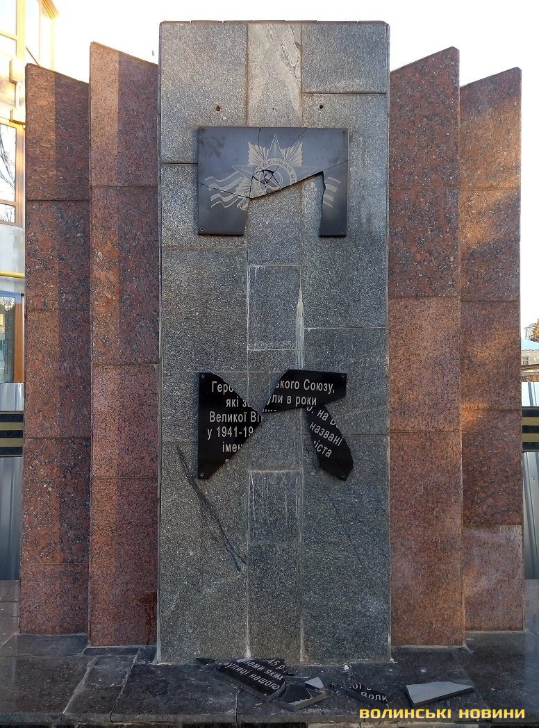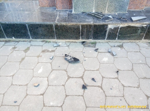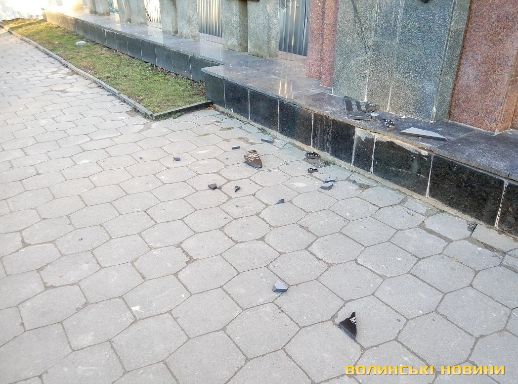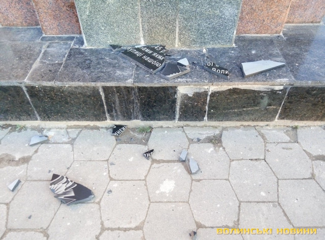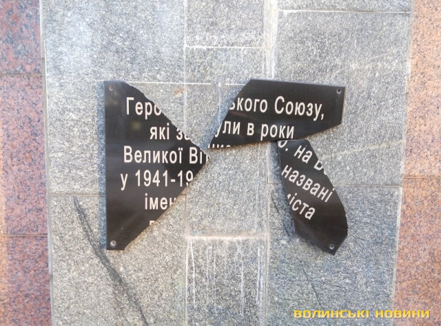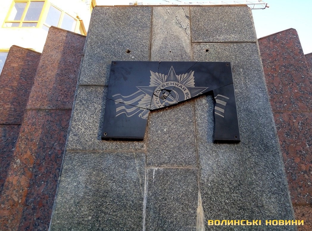Лучани, які проходили сьогодні вулицею Шопена, мали можливість побачити наслідки хуліганських дій - розбиту меморіальну дошку поблизу ЖК "Центральний". На землі навколо лежать скалки. Дошка є частиною історичної пам'ятки -стели Героям Радянського Союзу.