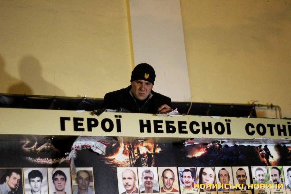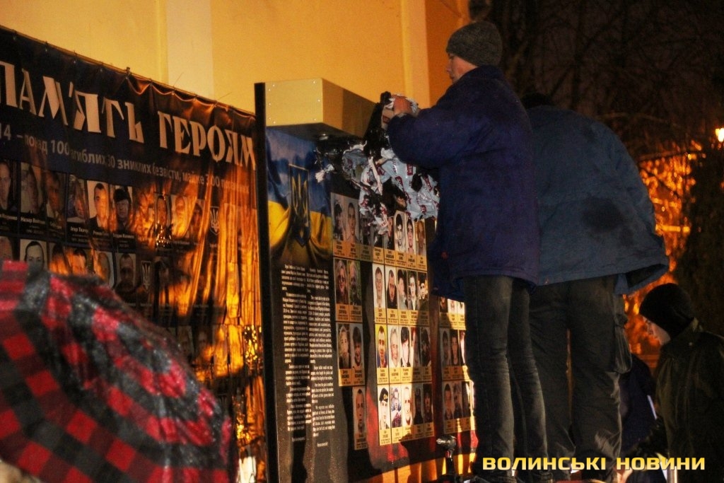 Півтора місяці тому до міського голови знову звернувся Ігор Алєксєєв, зауваживши, що банер – тимчасовий та з часом може набути неприглядного вигляду, тож потрібно зробити щось інше. Тому виникла ідея встановити фотостенд. Микола Романюк наголосив, що це – лише фотостенд, а меморіальну стелу героїв Небесної Сотні із викарбуваними на ній іменами загиблих волинян встановлять на меморіалі поблизу могили Василя Мойсея.