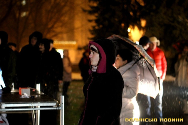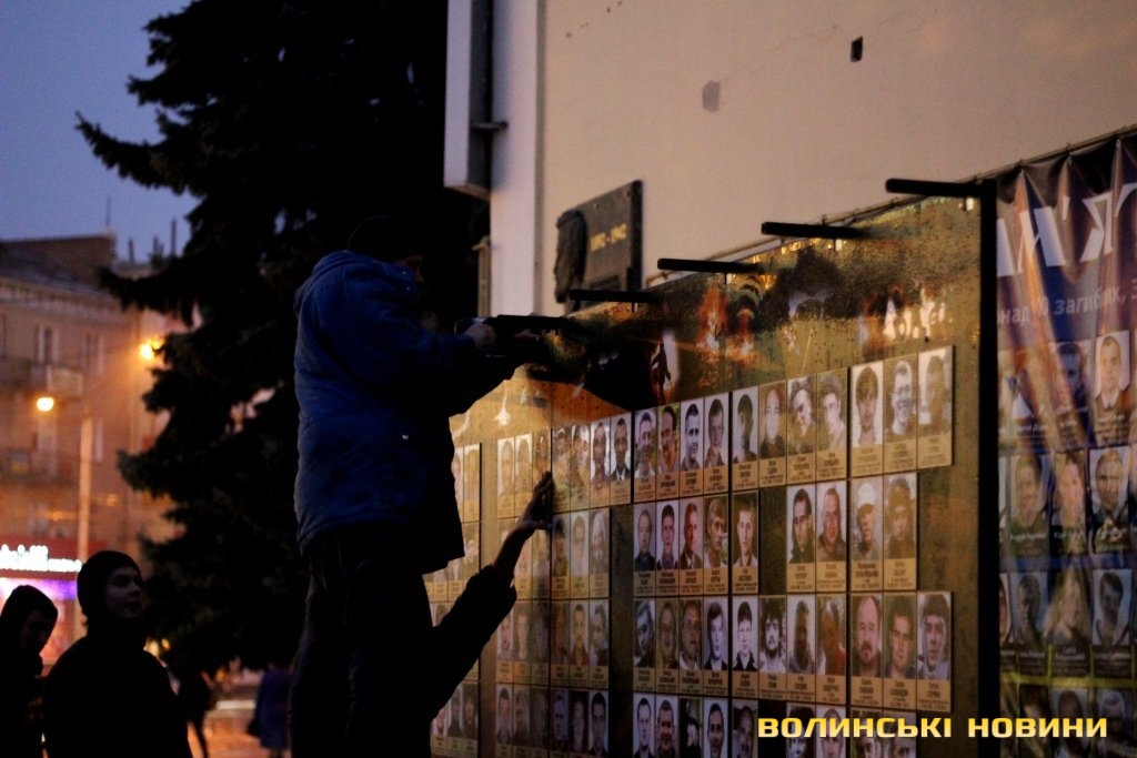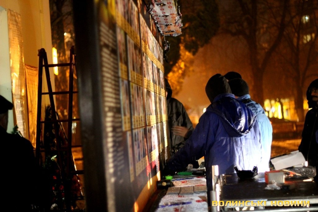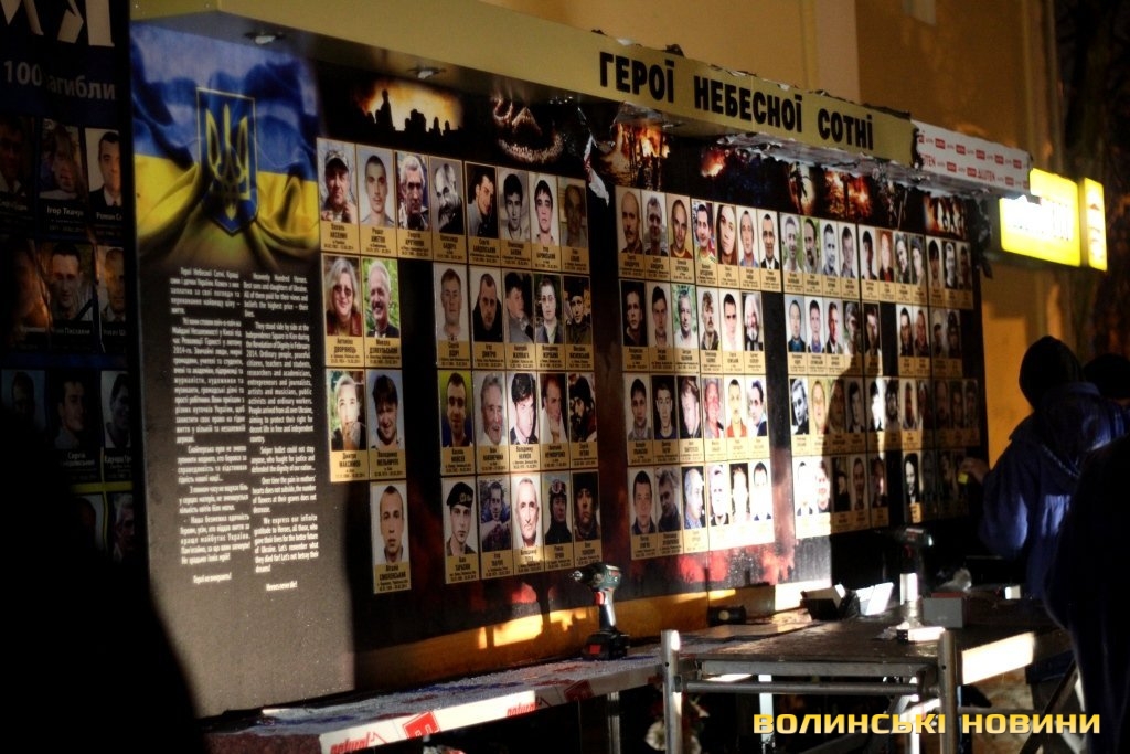 Напередодні річниці початку Революції Гідності у центрі Луцька встановили фотостенд із портретами загиблих на Майдані.