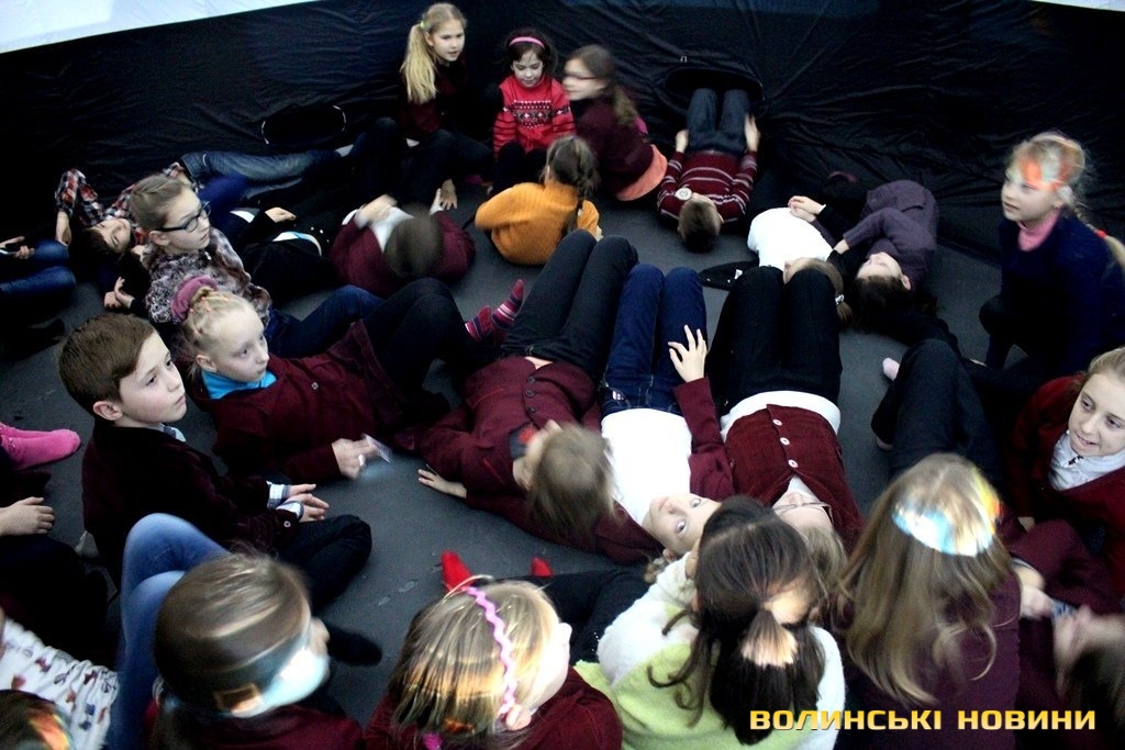 «Ми зайшли в цю кульку і нам сказали лягти, так фільми я ще не дивилася. Це дуже-дуже цікаво, бо все відбувається в такому незвичному місці й повчально. Ми дивилися фільм про динозаврів, про космос», - ділиться враженнями четвертокласниця Іринка.«Чарівний планетарик» уже відвідав Луцьк, село Рованці, місто Ківерці, а в січні, кажуть організатори, поїде в Шацьк, куди їх запрошують.
