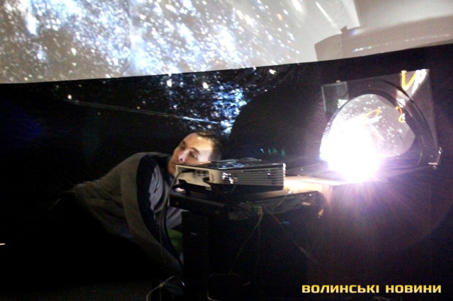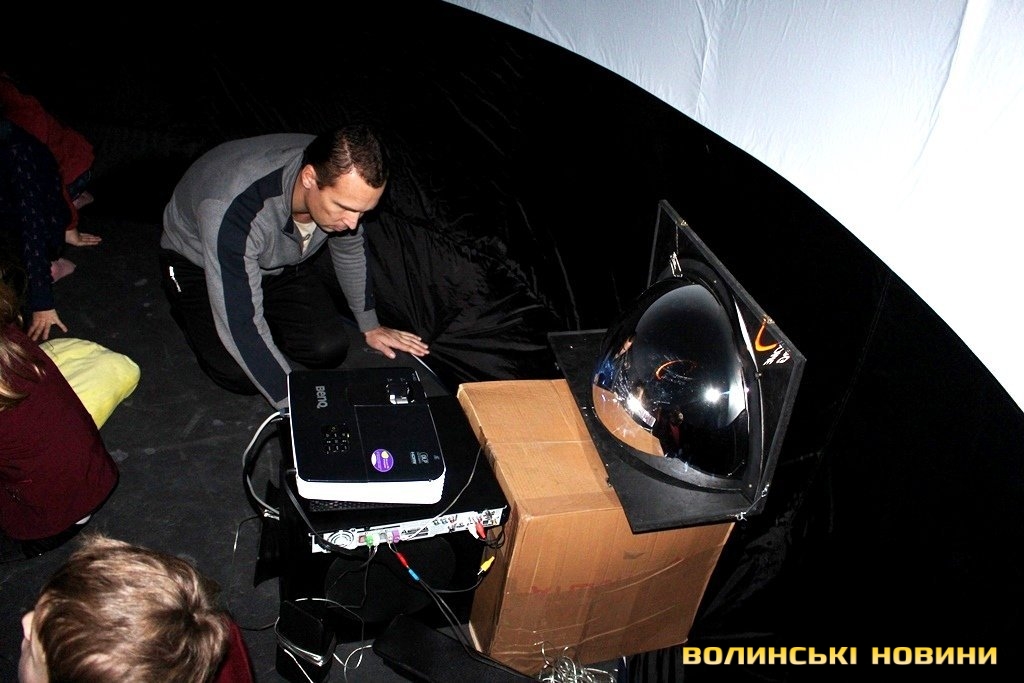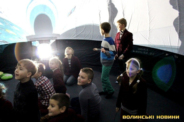 «Раніше наш «Чарівний планетарик» працював у Запоріжжі, тепер його презентували в Луцьку. Насправді, це цікава технологія навчання, бо діти від цього просто в захоплені. Наукові фільми ми купуємо в дистриб’юторів, адже будь-який тут не покажеш. Для цього ми придбали спеціальну техніку, завдяки якій фільми відображаються на кулі півколом. Окрім того, необхідно й саму кулю тримати у надутому стані. Для цього працюють насоси, які закачують свіже повітря в наш планетарій», - розповідає власниця наувово-розважального атракціону Олена Дороніна.Цікавим й пізнавальним є фільм як для дітей, так і для дорослих, їхня тривалість по 20-40 хвилин.