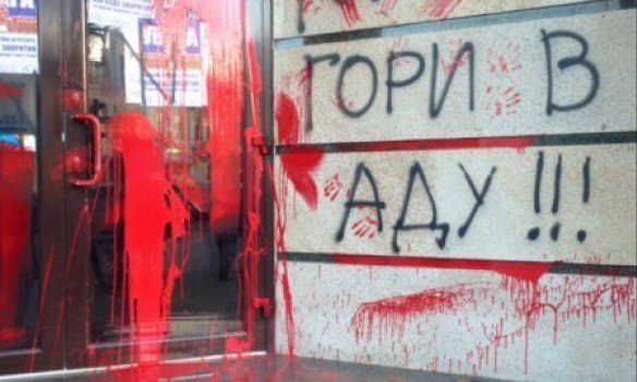 У чергову частину Луцького відділу поліції сьогодні надійшло три повідомлення про те, що в ніч з 14 на 15 червня невстановлена особа червоною фарбою пошкодила вікна, двері приміщення відділень трьох банків у Луцьку. Про це інформує прес-служба волинської поліції.