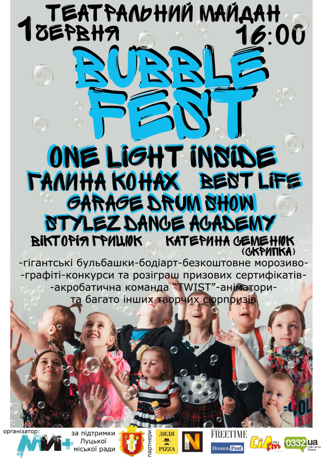 Фестиваль мильних бульбашок «Bubble FEST» традиційно відбудеться у Луцьку 1 червня, до Міжнародного Дня захисту дітей.