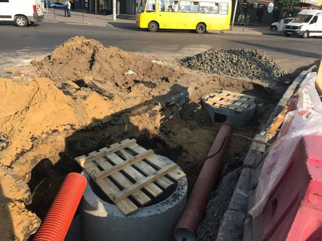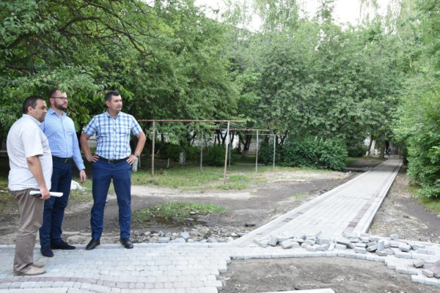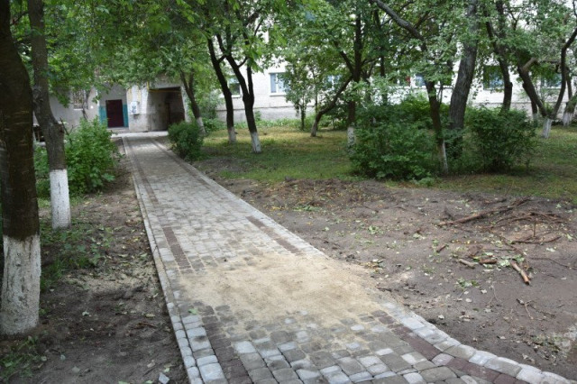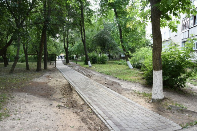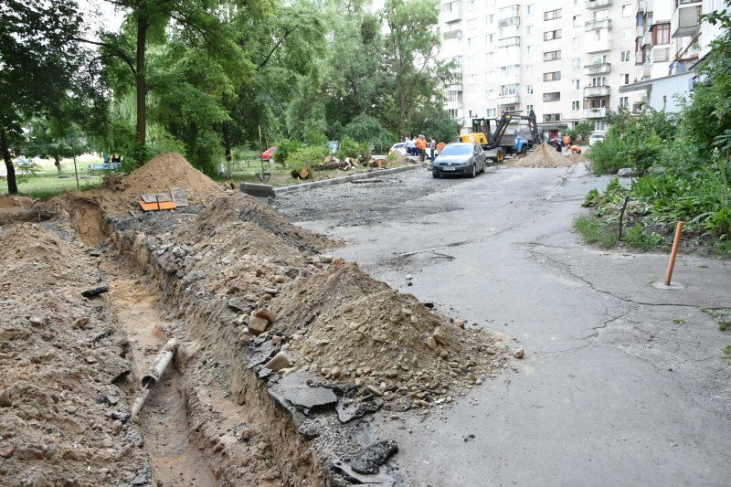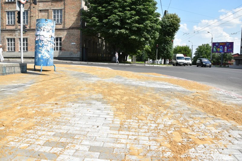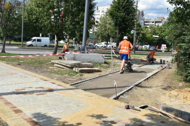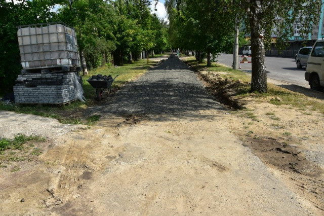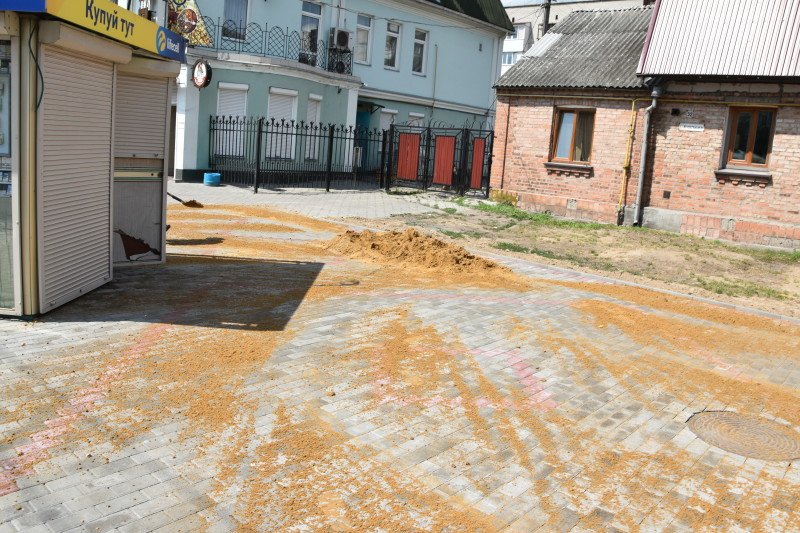 Як зауважив Ігор Поліщук, під час заміни мереж робітники мали можливість переконатися у товщині вкладеного асфальту та якості "основи", яка робилась під час попереднього ремонту. "Асфальт тонким шаром вкладений просто на грунт", - заявив він.Також, триває робота на прибудинковій території пр. Молоді, 13б. Зокрема, тут прокладуть доріжки із бруківки, що йтимуть повз Дитячу художню школу.