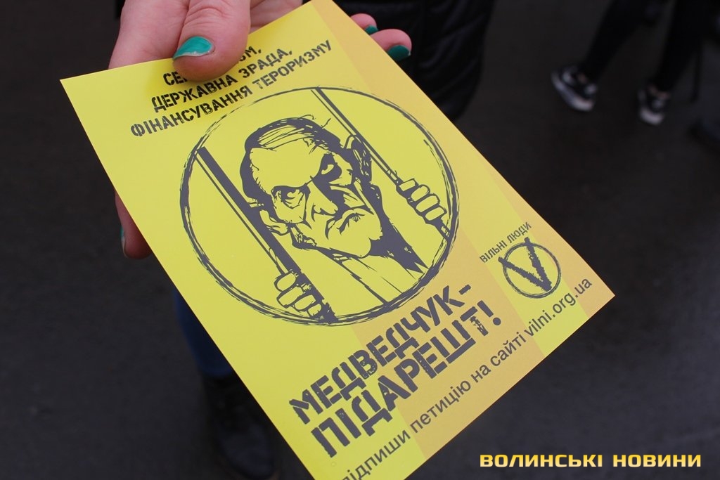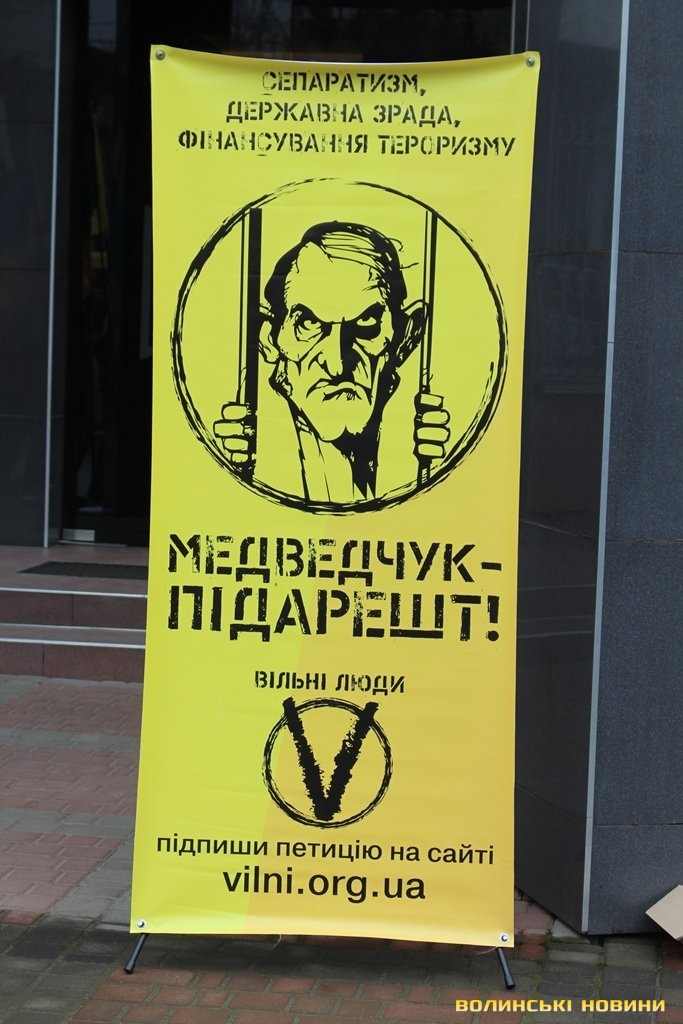 Волиняни долучилися до всеукраїнської акції, під час якої в різних куточках України пікетують СБУ та прокуратуру з вимогою арештувати Медведчука та заборони його організацію «Український вибір». Зі слів активістів, вони збираються під будівлями правоохоронних структур, аби привернути увагу президента та силовиків до того, що головним агентом впливу Росії в Україні, куратором проектів «Новоросія», «Русская весна» та «Федералізація» є саме Віктор Медведчук.