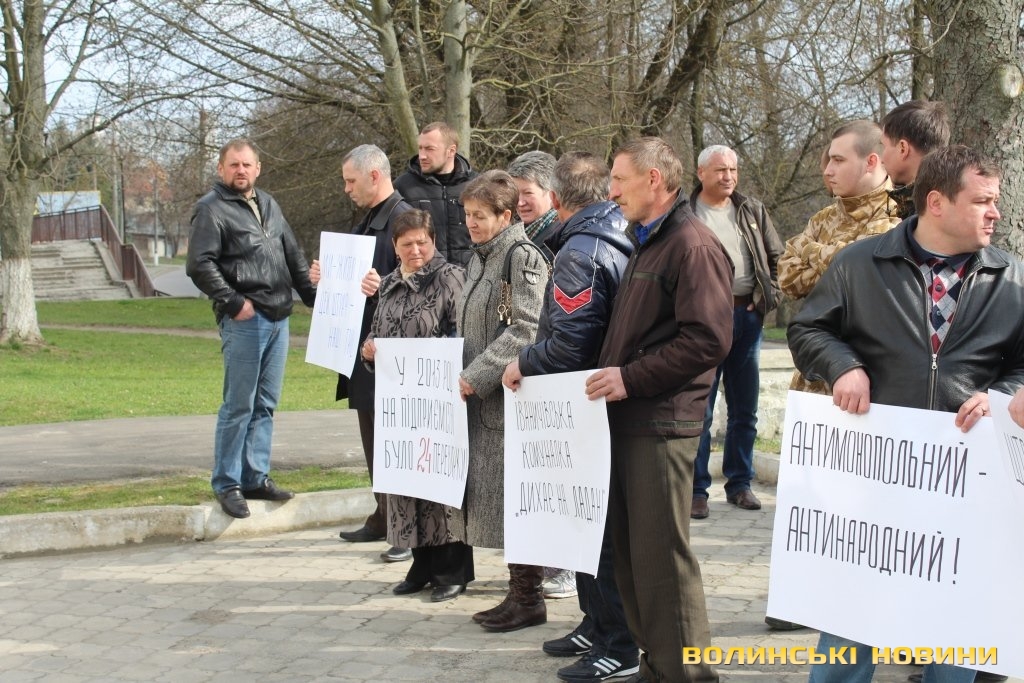 Під гаслами «антимонопольний - антинародний» та «іваничівська комуналка дихає на ладан» працівники комунального підприємства селища Іваничі спільно з представниками Самооборони Майдану та автомайданівцями зібралися 25 березня перед будівлею Господарського суду Волинської області, що на вулиці Глушець.