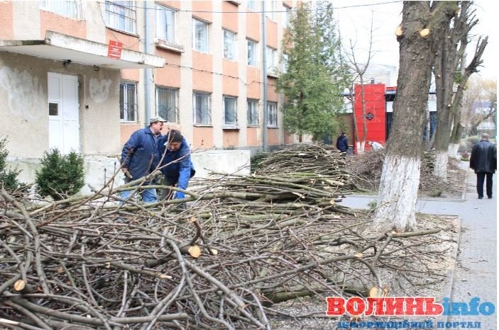 Біля гуртожитку волинського університету дерева обрізали так, що лишились одні стовбури.
