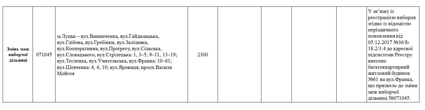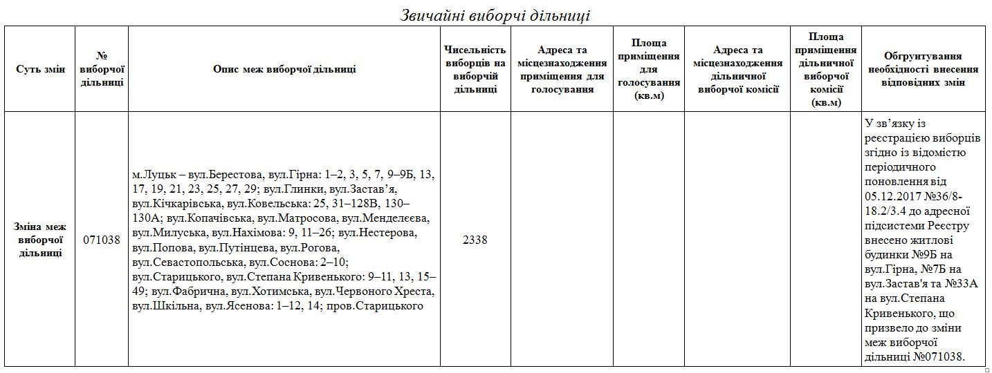 Як йдеться у документі, передбачається зміна меж виборчих дільниць №071045 та №071038.