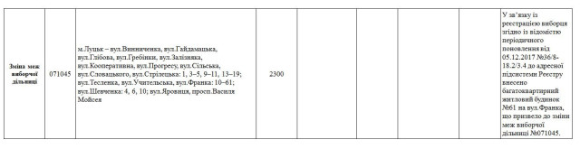 Згідно з проектом рішення, до виборчої дільниці №071038 додадуться будинки №9Б на вул.Гірна, №7Б на вул.Застав'я, №33А на вул.Степана Кривенького. А до дільниці №071038 –багатоквартирний житловий будинок №61 на вул.Франка.