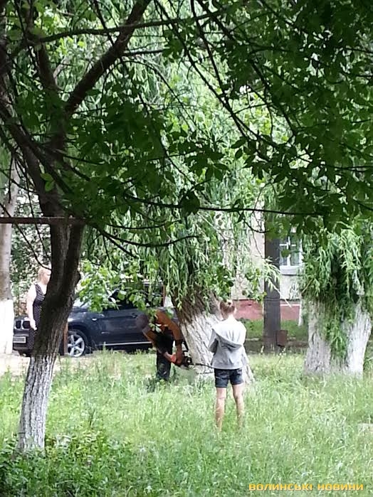 Як розповіли Інформаційному агентству Волинські Новини свідки події, дерева почали вирубувати над дорогою та у дворі будинку.