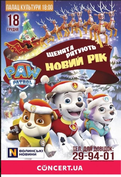 Для найменших лучан презентують виставу «Цуценята рятують Новий рік». Захід відбудеться 18 грудня у Палаці культури міста Луцька о 18.00 годині.