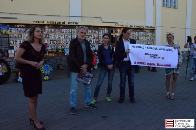 На акції хвилиною мовчання вшанували пам’ять усіх журналістів, які загинули через виконання професійних обов’язків. Підтримати колег із ківерцівської газети «Вільний шлях» прибули місцеві журналісти, а також представники ЗМІ із Миколаєва, Чернівців та Києва. Прийшли також активісти Цивільного Корпусу «Азов. Волинь».