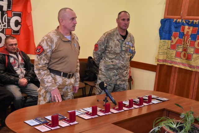 Потому Ордени “За мужність, доблесть, честь та відданість нації та українському народу” Сергій Пандрак вручив членам родин загиблих побратимів — айдарівців.