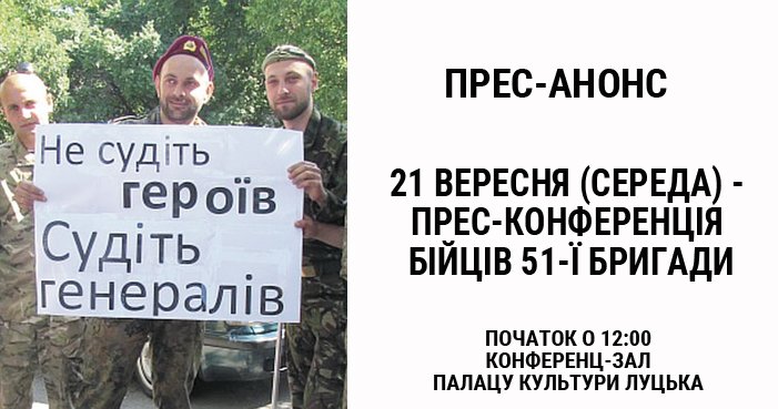 Прес-конференція бійців 51-ої бригади, яких репресує військова прокуратура, відбудеться у середу, 21 вересня, у Луцьку.
