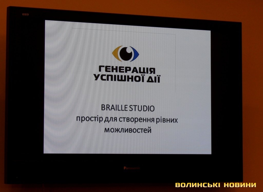 Як наголосила віце-президентка ВГО людей з інвалідністю по зору «Генерація Успішної Дії» (Київ) Юлія Сачук, інвалідність є не лише хворобою, а більше бар’єрністю, а якщо прибрати бар’єри в інфраструктурі, ставленні до інвалідів чи законодавстві, інвалідність зникає і люди можуть брати повноцінну участь у житті суспільства. З її слів, ідея створення брайль-студії не нова, але чимало часу знадобилося, щоб набратися сміливості її реалізовувати. Так, до організації належать не просто незрячі люди, а й тифлопедагоги, які навчають молодь бути повноцінними членами суспільства. До прикладу, раніше була створена карта-схема київського метрополітену шрифтом Брайля, доступною стала перша карта України для незрячих (досі учні з вадами зору використовували карти часів СРСР). Держава, мовляв, забезпечує лише базові підручники шрифтом Брайля, тому рівень знань незрячих випускників є нижчим, ніж хотілося. Низькими лишаються шанси їхньої інтеграції в суспільство. Відео надане Волинським телебаченням: