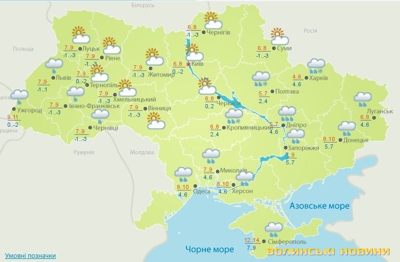 У Луцьку прогнозують заморозки і дощ зі снігом