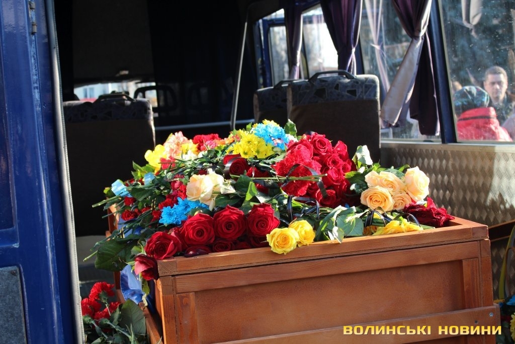 Труну із тілом загиблого пронесли жалобною ходою на Театральний майдан, де чимало лучан зібралося, щоб віддати останню шану героєві.