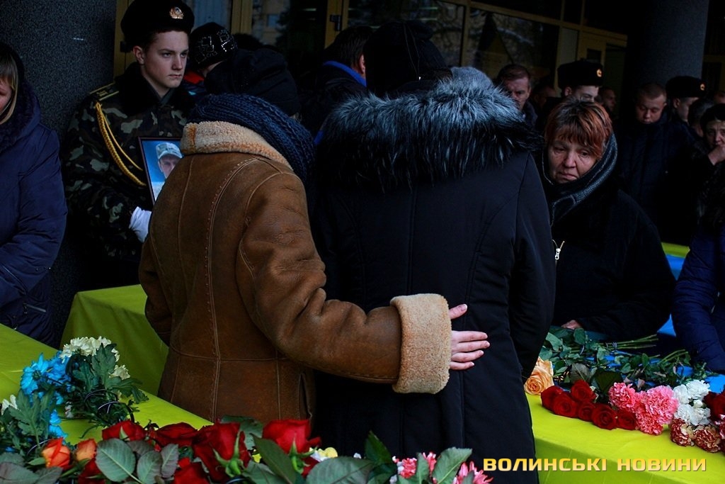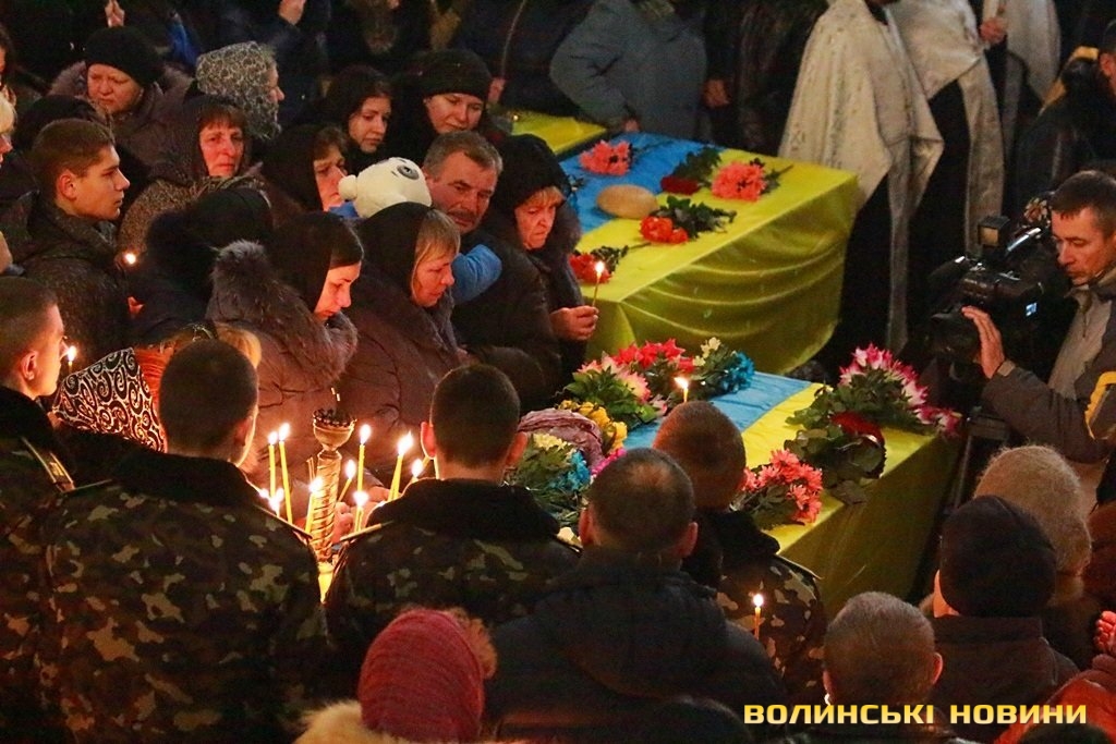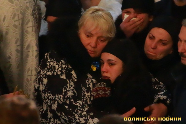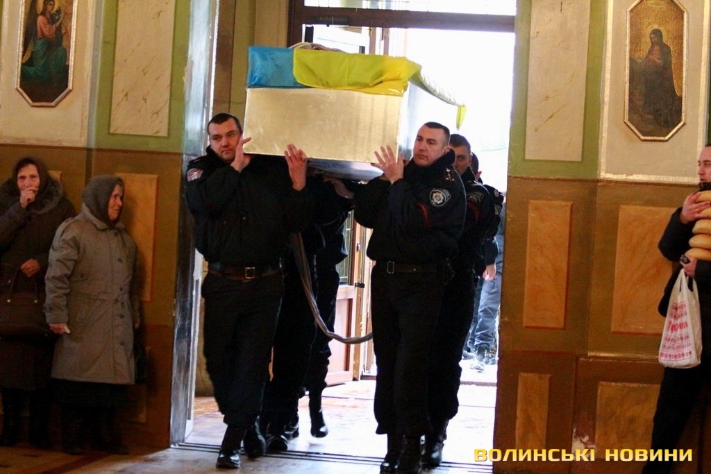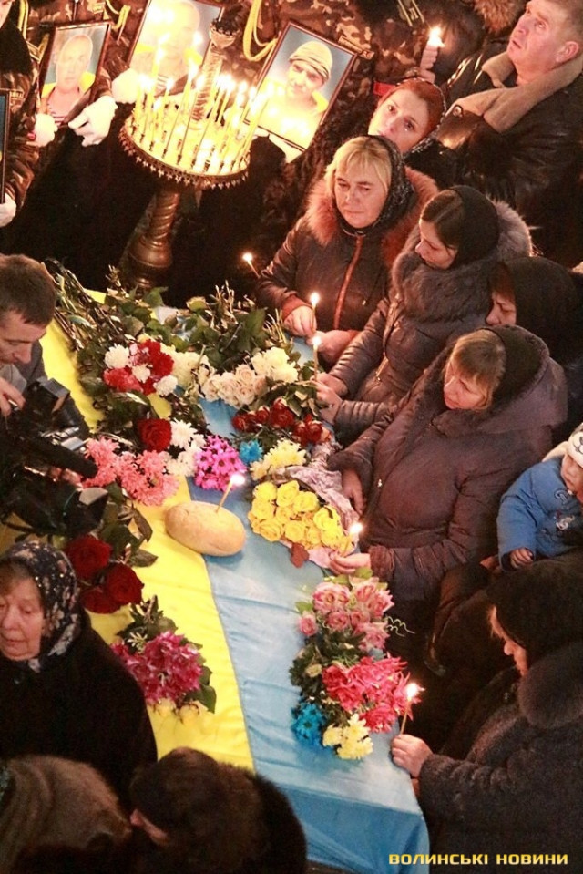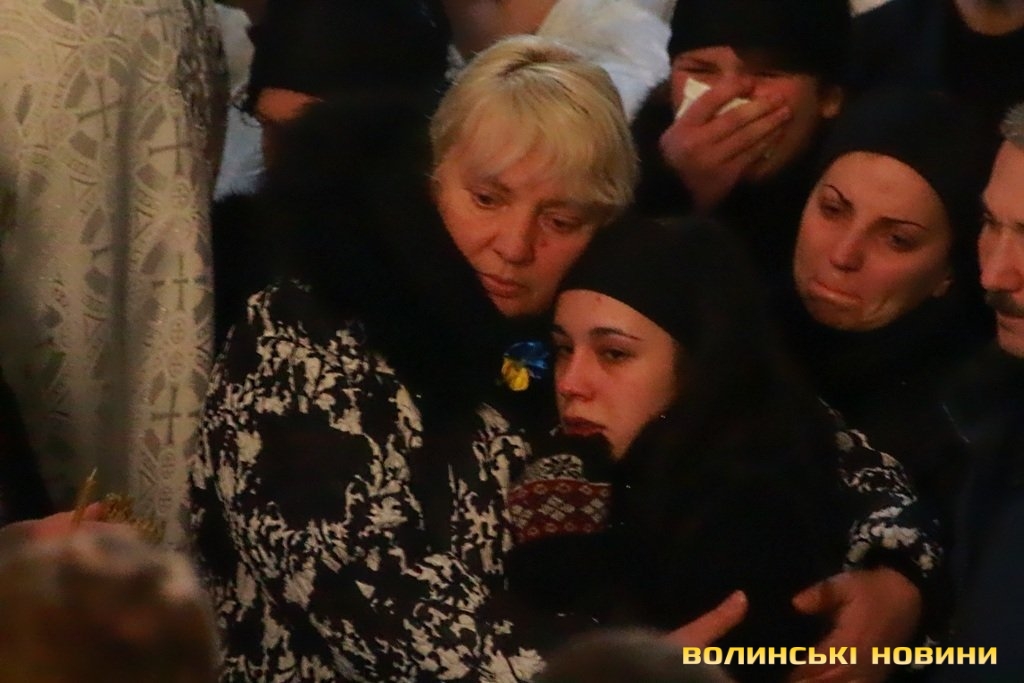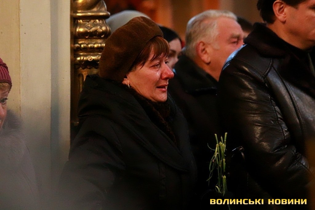 Лучани ставлять свічки за упокій загиблих ГероївВажкі цинкові труни внесли до храму Гіркі сльози втрати та відчаюДвоє із загиблих воїнів так і не встигли стати на рушничок щастяРідні загиблих тримаються, як можутьУ Луцькому Свято-Троїцькому Соборі ніде яблуку було впастиСацюк Олександр (позивний «Білий»)Фельдшер роти рядовий міліції Олександр СивийСергій Помінкевич (позивний «Чех»)Шолуха Віктор (позивний «Шериф»)Представники Самооборони ВолиньЩира молитва за упокійЛяшук Максим (позивний «Яр»)