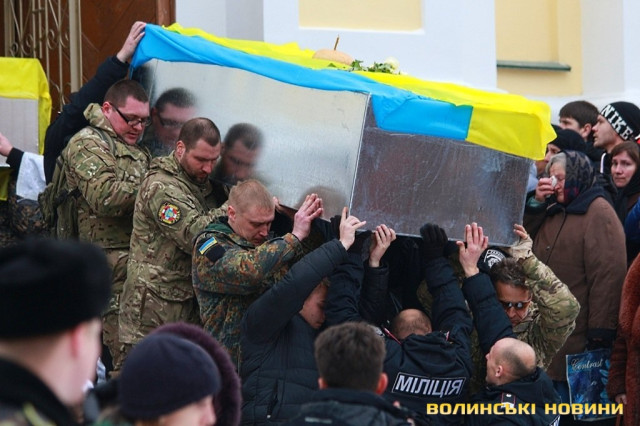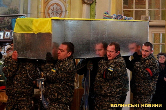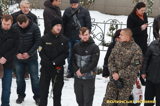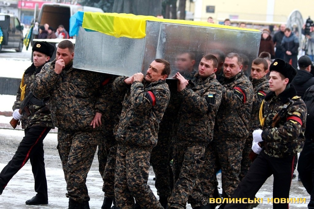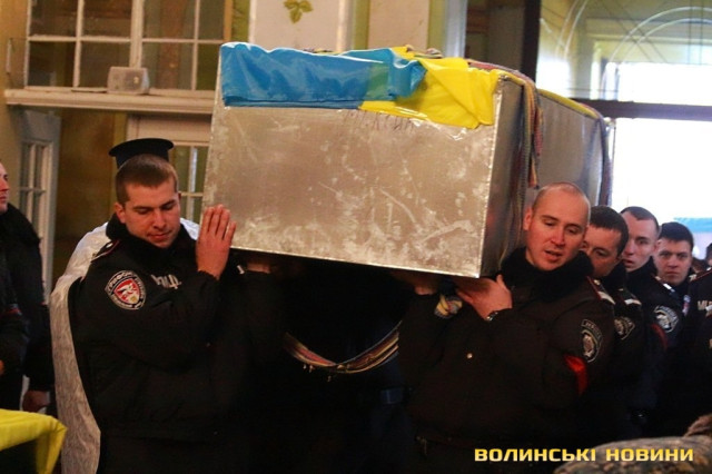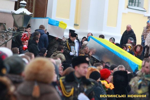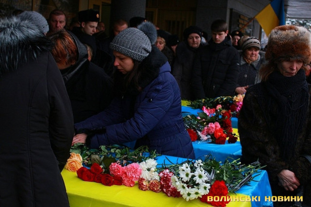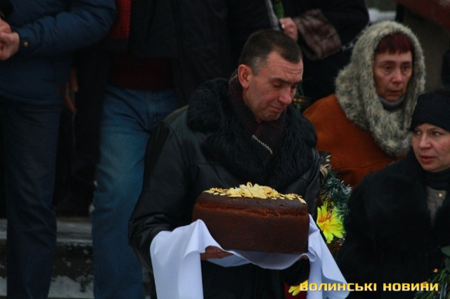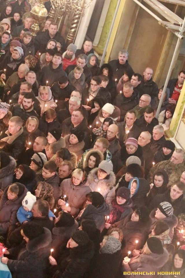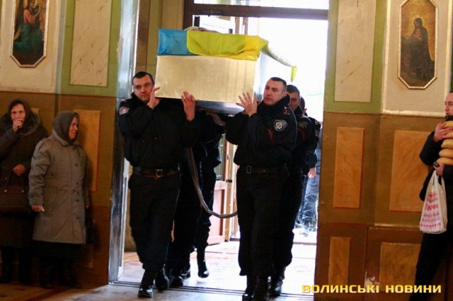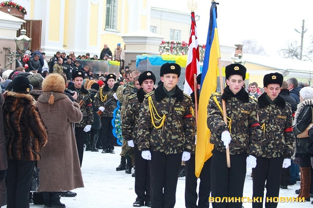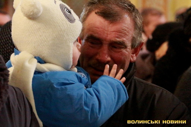 Лучани ставлять свічки за упокій загиблих ГероївВажкі цинкові труни внесли до храму Гіркі сльози втрати та відчаюДвоє із загиблих воїнів так і не встигли стати на рушничок щастяРідні загиблих тримаються, як можутьУ Луцькому Свято-Троїцькому Соборі ніде яблуку було впастиСацюк Олександр (позивний «Білий»)Фельдшер роти рядовий міліції Олександр СивийСергій Помінкевич (позивний «Чех»)Шолуха Віктор (позивний «Шериф»)Представники Самооборони ВолиньЩира молитва за упокійЛяшук Максим (позивний «Яр»)