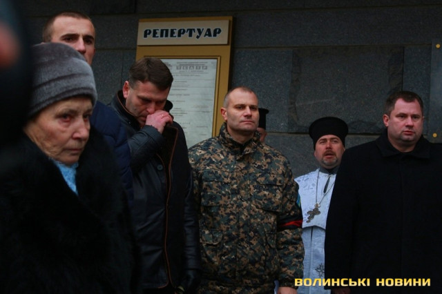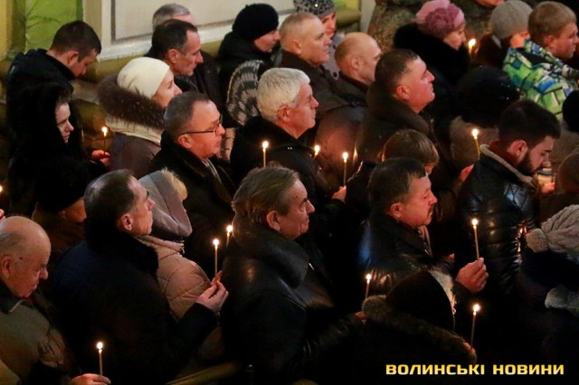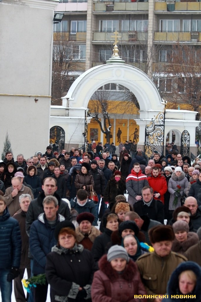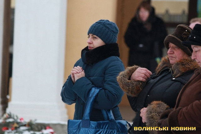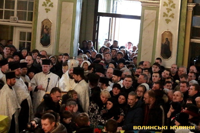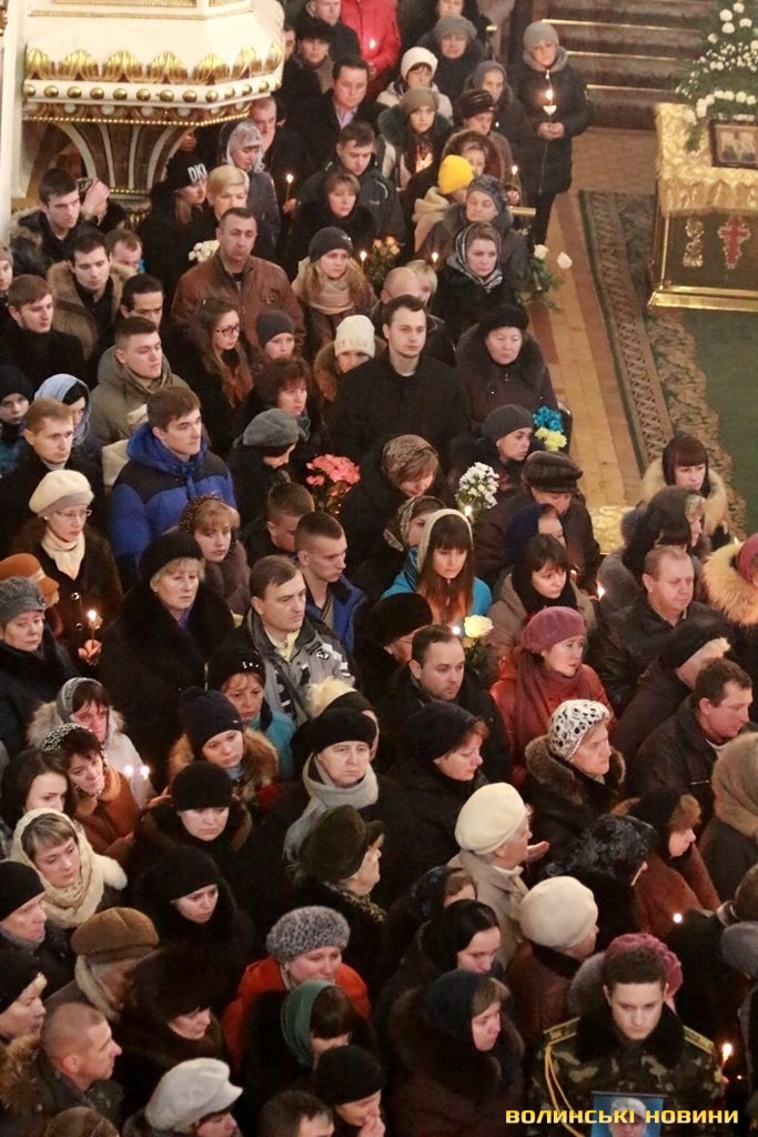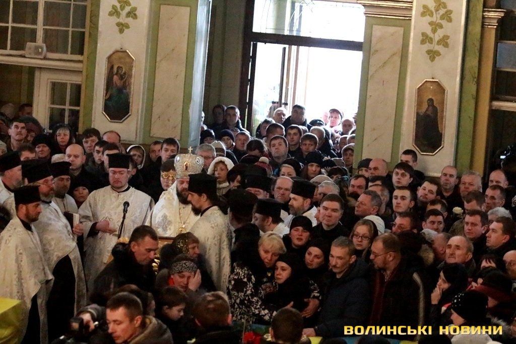 Прощання із Героями та відспівування відбулось у верхньому храмі Свято-Троїцького кафедрального собору.«Скорботні заупокійні дзвони скликали волинську громаду до Собору. З тяжкими переживаннями ми проводимо своїх синів та чоловіків захищати кордони та цілісність держави. І завжи плекаємо у собі бажання, аби вони швидше повернулися. І от наші Герої повернулися. Утім, сьогодні, при зустрічі з ними не радість лежить на наших серцях, а печаль. Бо повернулись вони у цинкових трунах. На жаль, і так іноді повертаються додому наші Герої. Але вони не ховалися за спинами матерів та дружин, не шукали жодних документів, аби не піти на фронт. Тож сьогодні ми приносимо Богові та Україні найдорожчу жертву – найкраще, що ми мали», - звернувся у власні проповіді до зболених горем сердець Митрополит Луцький та Волинський Михаїл.