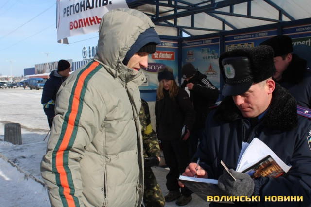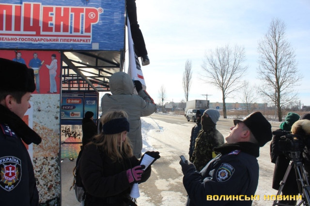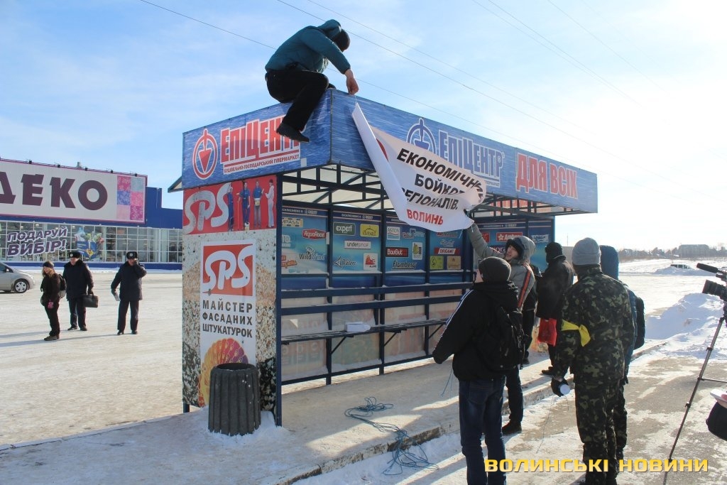 Перед початком акції банер із написом «Економічний бойкот регіоналів. Волинь» активісти хотіли закріпити над зупинкою громадського транспорту, закривши ним напис «Епіцентр». Це викликало суперечку з правоохоронцями.