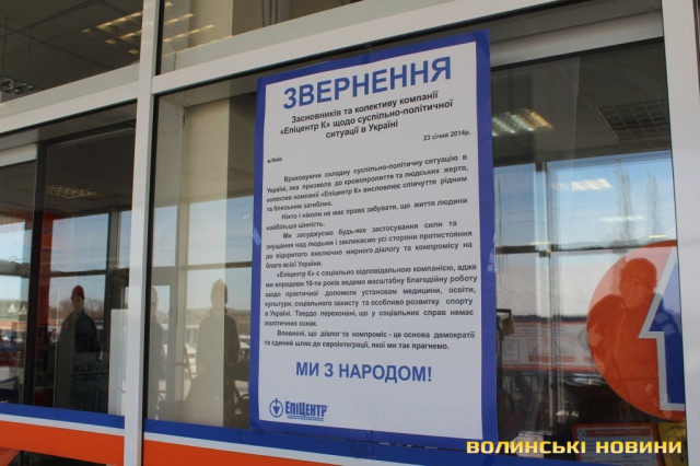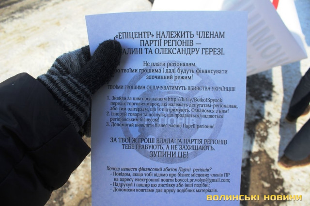 У Луцьку - бойкот бізнесу регіоналів. Розпочали з «Епіцентру»