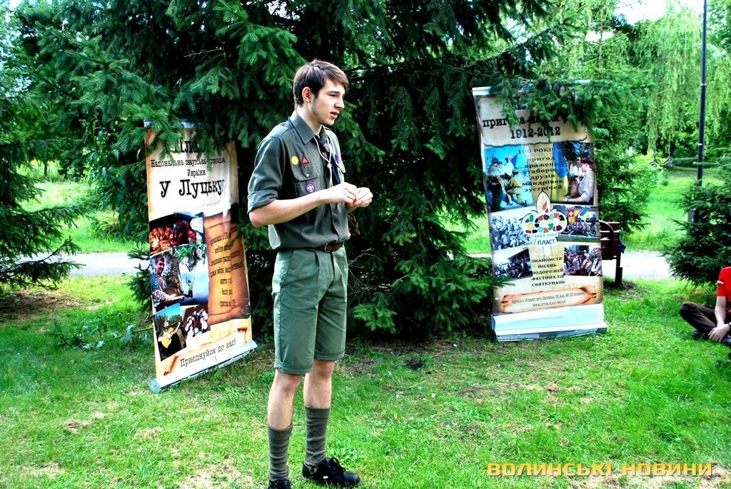 Для присутніх волинський пластун Назар Рейкін розповів, що скаутський рух зародився у 1907-му році, його засновник - військовий, який хотів виховувати молодь патріотично і з воєнізованими настроями.