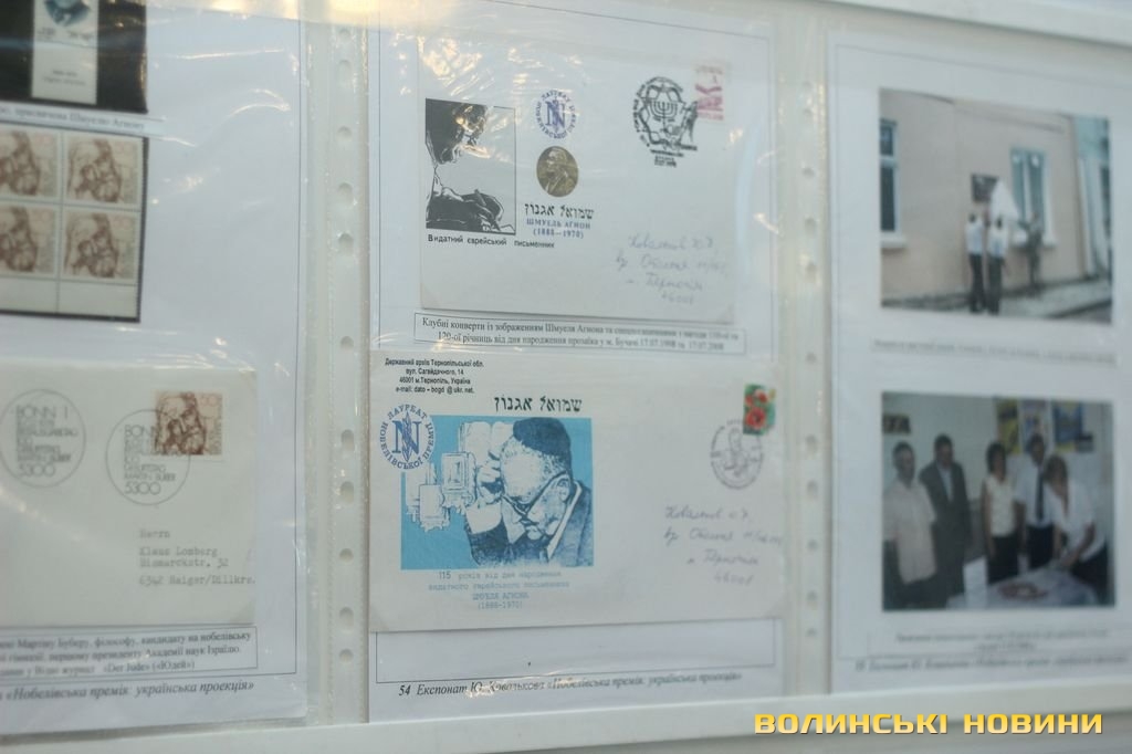 Лауреат найпрестижнішої інтелектуальної премії, єврейський письменник, вихідець з Галичини, перший з івритомовних та їдишемовних письменників володар цієї високої відзнаки Шмуель Йосеф Аґнон мав безпосереднє відношення до Польщі. Тому сусідній народ називає його і «своїм» лауреатом. Йому також присвячено чимало філателістської продукції.В живих залишився лише один нобелівський лауреат українського походження – хімік, поет, драматург і філософ Роалд Гоффман.Коли розпочалась ІІ Світова війна, його батько потрапив у так званий трудовий табір під Золочів. Проте, маючи зв’язки, батьку Роалда вдалось відправити членів своєї родити в Золочівський район. А його самого під час спроби повстання приговорили до страти – публічне повішення відбулось на центральній площі Золочіва. Маленького Роалда з сім’єю прихистив вчитель Микола Дюк, який переховував їх на горищі школи. Згодом Україну майбутній науковець називав «землею обітованою свого серця». Нині автор колекції підтримує контакти з Роалдом Гоффманом – вже 15 років він листується з науковцем.