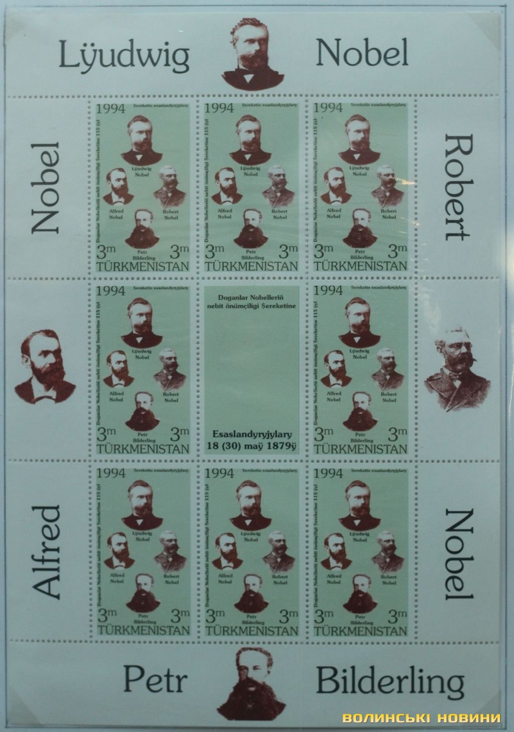 Як розповів тернопільський філателіст, власник колекції Юрій Ковальков, найпрестижнішу інтелектуальну премію світу засновав відомий меценат, винахідник та підприємць Алфред Нобель.Будучи неодруженим та маючи досить великий спадок, він задумався над тим, як грамотно ним розпорядитися. Тодішній секретар Нобеля баронеса Берта Софія Фелісіта Баронін фон Зутнер почала переконувати його в тому, що кошти слід витратити на відзначення видатних науковців та діячів. Альфред Нобель пристав на цю пропозицію, а тому заповіт вченого багато кого шокував: в оголошеному в день його смерті документі, він заявив, що кошти слід вкласти в цінні папери, а на дивіденди, отримані з них, виплачувати премії видатним миротворцям та науковцям. До слова, своїм родичам та племінникам у спадок він залишив зовсім незначні суми.