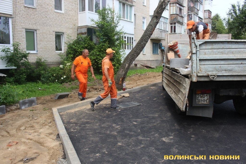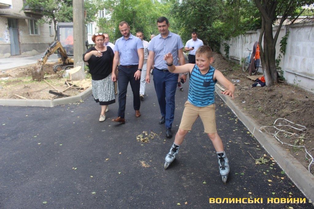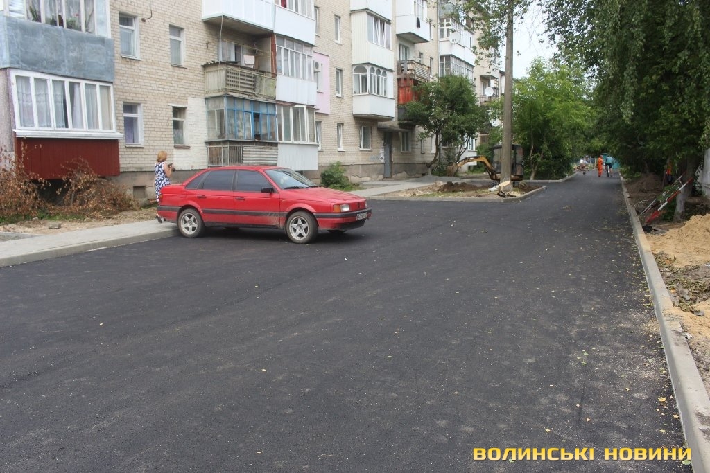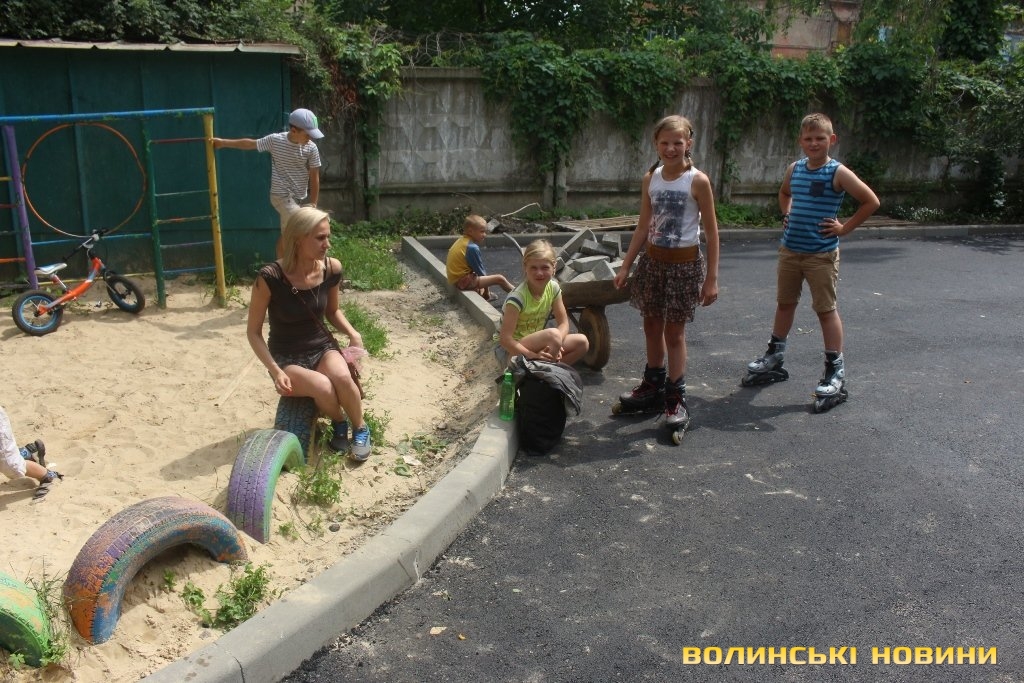 Двір не був включений в перелік ремонту об’єктів на два роки, втім вдалося віднайти кошти. Тут вже проклали асфальт, будуть пішохідні доріжки з бруківки, діти вже облюбували новий двір - катаються на роликах і дуже задоволені. Зараз роботи ведуться фактично по всьому місту: і прибудинкові території, і дороги, і в приватний сектор доводиться доладу.