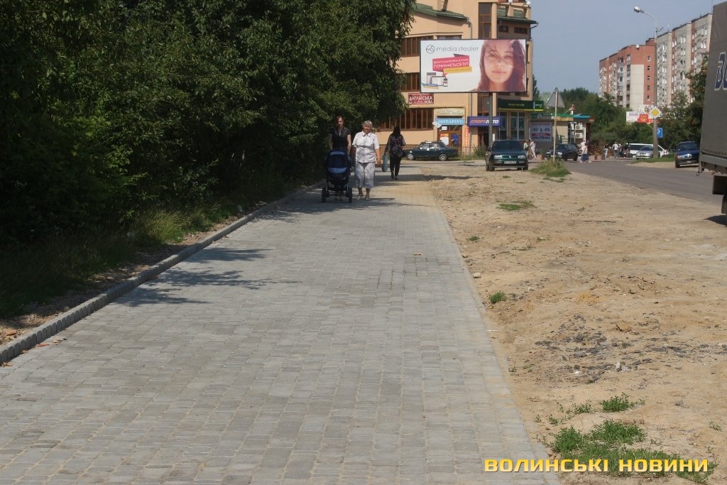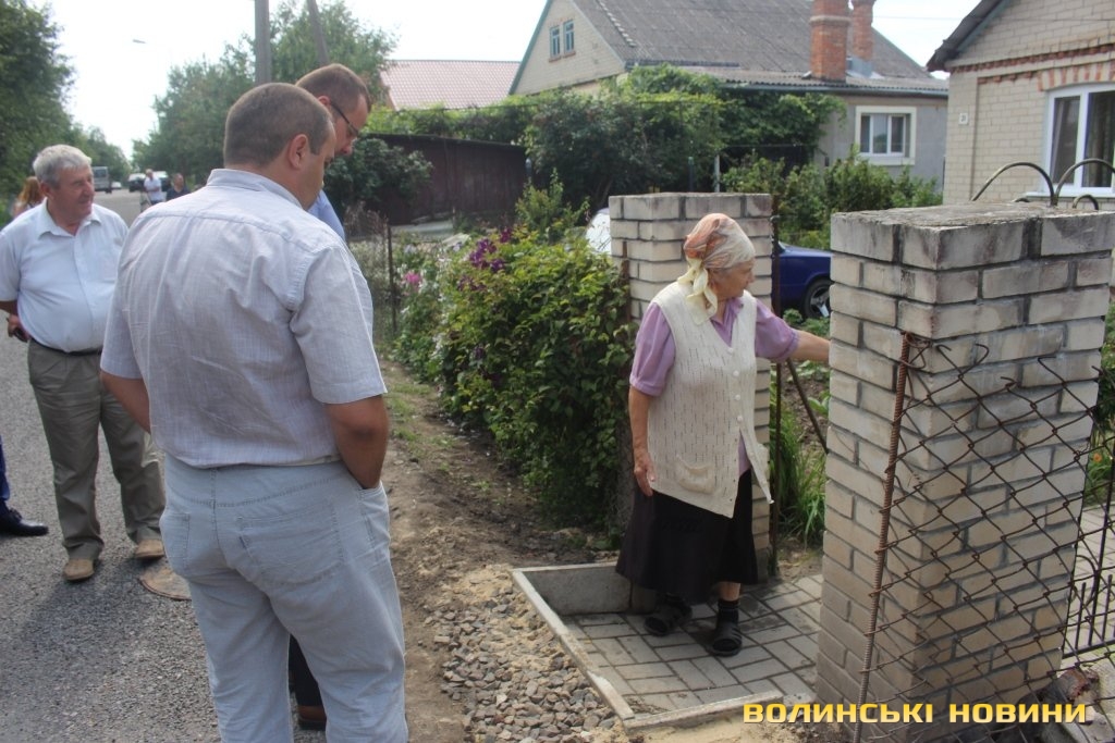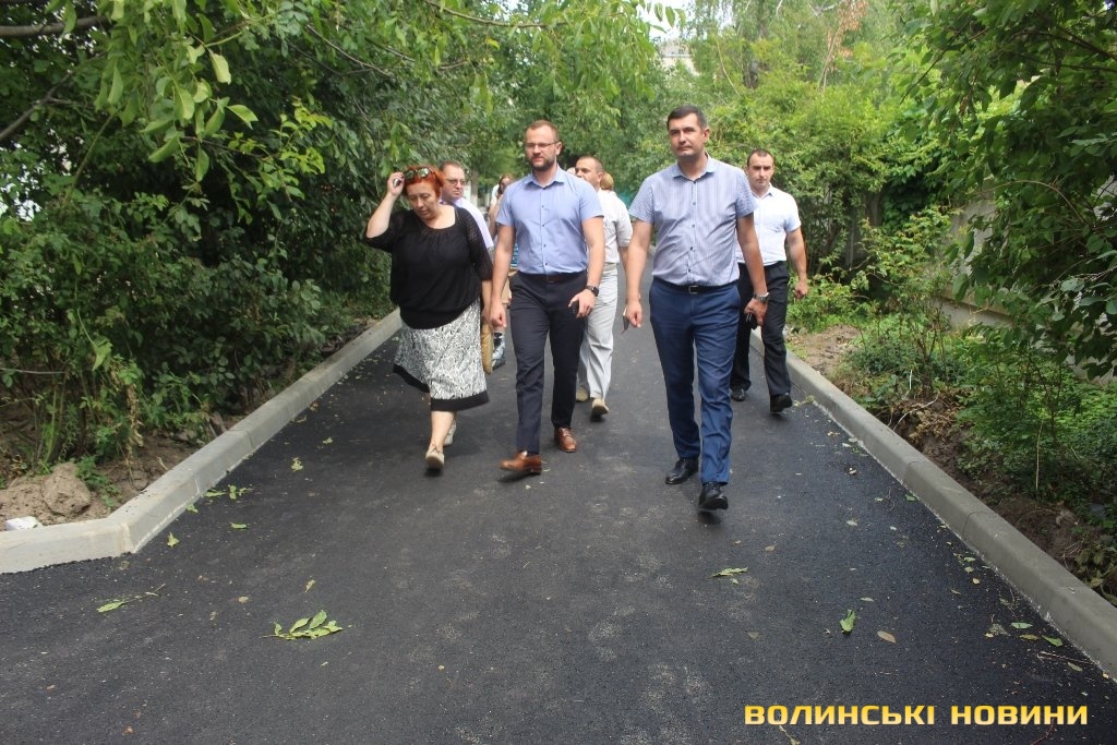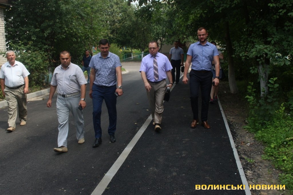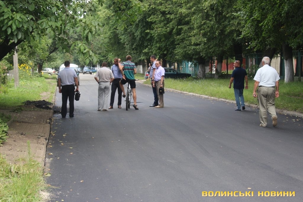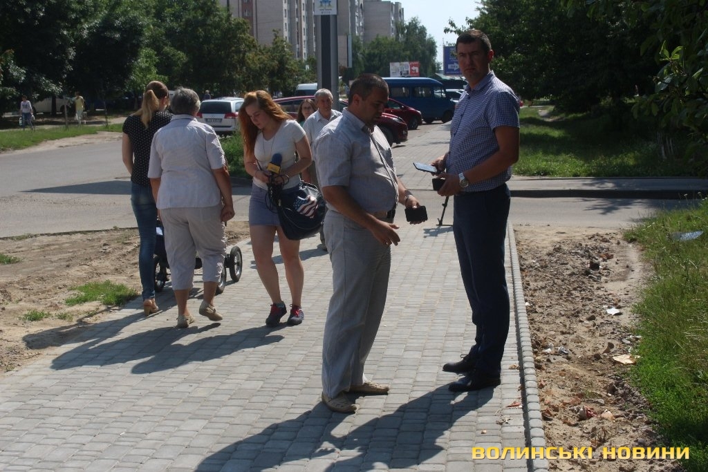 «Ми тут із 71-го року живемо й дороги ніколи не було. Тут такі калюжі непрохідні були. Ми все писали звернення, ходили в міську раду, але безрезультатно. Й скільки вже тут тих депутатів було, і Яковлев (ВН, - екс-перший заступник міського голови) обіцянки давав, але толку - нуль. Добре, що от тепер Соломатін (ВН, -депутат міської ради)в нас, він завжди, що каже – те й виконує, дослухається до людей. Слава Богу, що маємо тепер дорогу й зможемо нормально до зупинки вийти», - ділиться враженнями місцева мешканка.Зі слів виконувача повноважень Луцького міського голови Григорія Пустовіта, вже найближчим часом дорогу дороблять повністю.«Тут була ґрунтова дорога, але в жахливому стані. Тепер же, буде нова із щебеневим покриттям. Найближчим часом вона буде просякнута смолою й буде якісною, якою комфортно буде користуватися. Ми бачимо, що такі інспектування дають чималий результат, бо ми оцінюємо якість робіт, чуємо поради місцевих мешканців і до здачі об’єкту маємо змогу давати будівельникам настанови, аби виправляти недоліки», - наголосив Пустовіт.Завершальним об’єктом інспектування стала пішохідна доріжка вздовж будинку на вулиці Кравчука, 19а, де раніше буда одна глина, постійно машини паркуватися на цій території. Фактично, пішоходам ніде було пройти - людям доводилося виходити на проїжджу частину.На завершення огляду ходу виконання робіт, начальник департаменту житлово-комунального господарства Юрій Крась додав, що цього року в місті відбувається ремонт у таких масштабах, в яких ніколи раніше не проводився, зокрема це стосується реконструкції дворів та пішохідних доріжок.