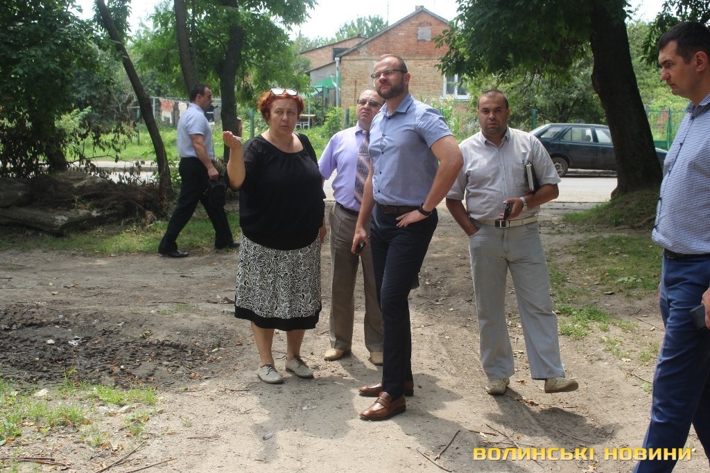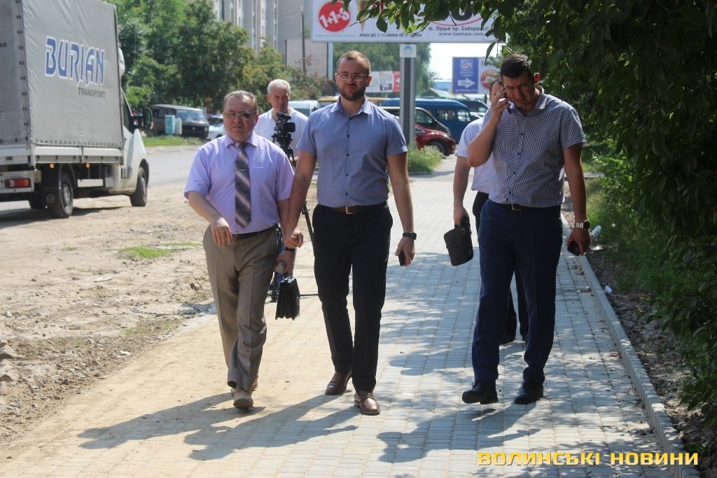Інспектували роботи радник Луцького міського голови, депутат і голова фракції «УКРОП» в міськраді Ігор Поліщук, виконувач повноважень Луцького міського голови Григорій Пустовіт, перший заступник Луцького міського голови Григорій Недопадта начальник департаменту ЖКГ Луцькради Юрій Крась.