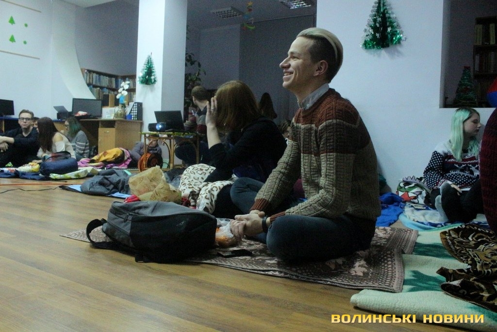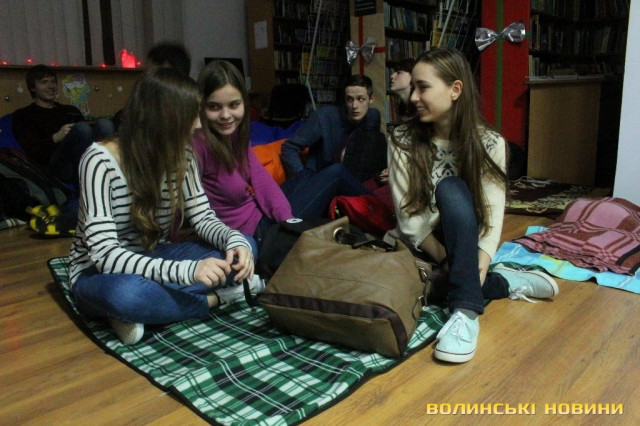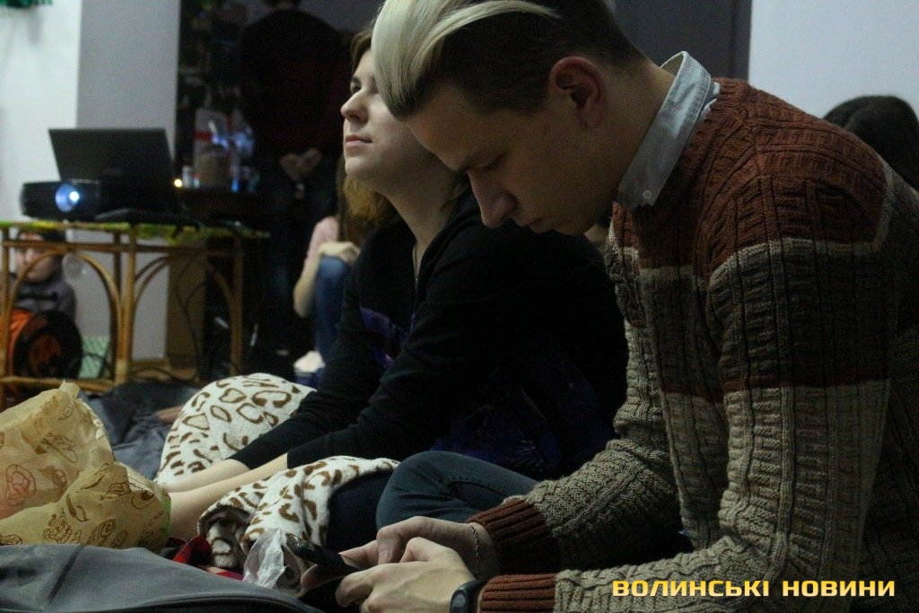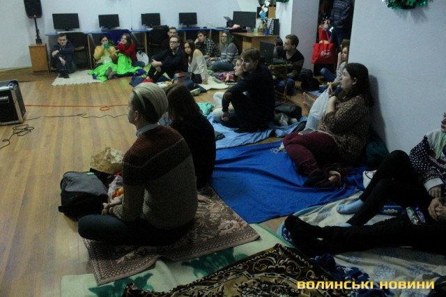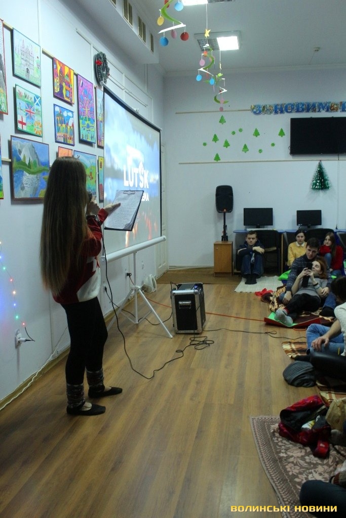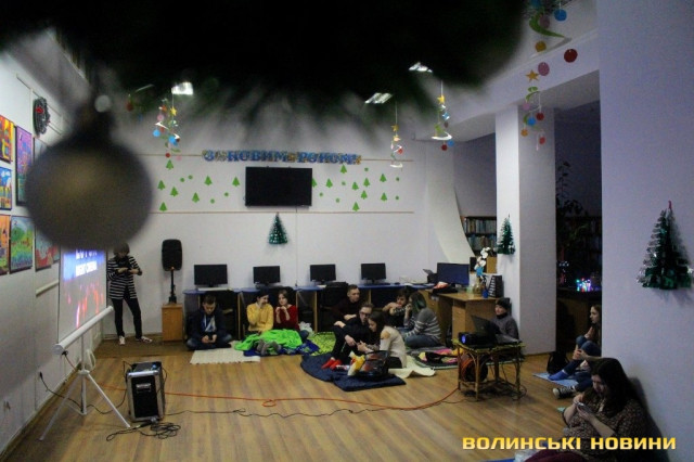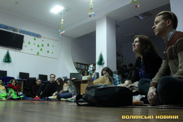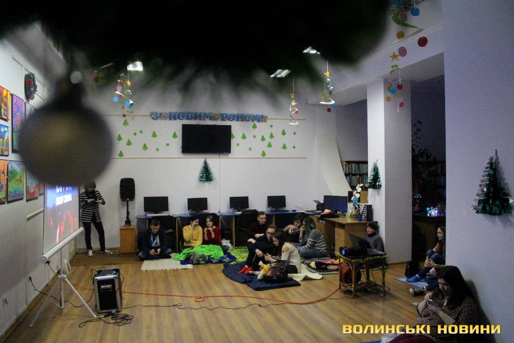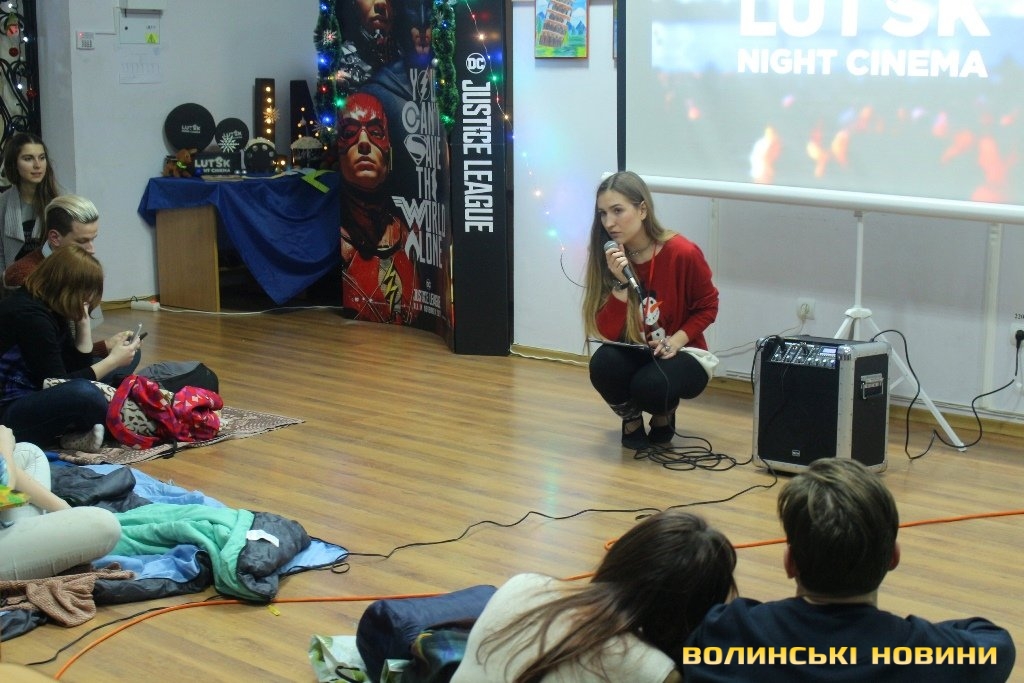 Близько 40 кіноманів розмістилася у затишній та по новорічному прикрашеній залі в Центральній міській бібліотеці для дітей, щоб переглянути незвичну добірку, яку приготували організатори «Lutsk night cinema». Зокрема, це - японський анімаційний фільм «Мій сусід Тоторо», романтична американська комедія «Старий новий рік», ще один анімаційний фільм «Мандрівний замок Хаула» та польську романтичну кінокомедію «Листи до М.», а також мультфільм «Льодовиковий період. Різдво мамонтів». Орієнтовне завершення заходу 7 ранку 17 грудня.