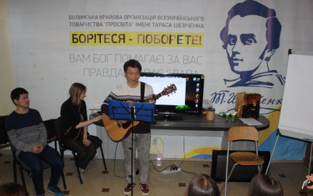 Хьон Гю і Тек Мін провели урок корейської каліграфії, розповіли про традиції та звичаї своєї культури. Окрім того, іноземні гості грали на гітарі та відповідали на усі запитання, які цікавили лучан.
