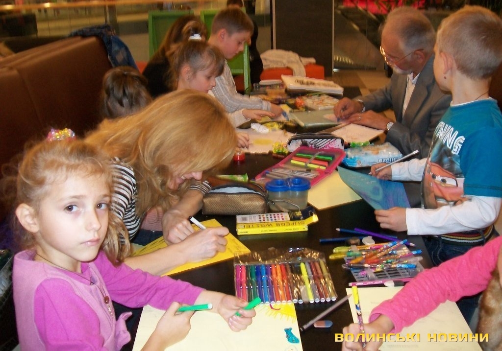 «У неділю, 12-го жовтня ми провели майстер-класи до Дня художника. Під час заходу в ТРЦ «ПортCity» усі охочі підходили до нас, ми їм давали усе необхідне і діти з батьками на папері зображали, як вони бачать художника. Зібралося біля 30 осіб, це діти від 3-х років до 15-ти років. Виставка картин і досі представлена на третьому поверсі у відпочинковій зоні. Так от, з нам був цікавий запрошений гість – луцький поет Миколай Шостак, він, до слова, пригостив усіх малят цукерками. З письменником спілкувалися в довільній формі, я йому розповіла про свою ідею щодо літературної студії, а він - погодився її очолити», - розповідає Інфіормаційному агентству Волинські Новини керівник мистецької студії «Соняшник» Лариса Чубай.