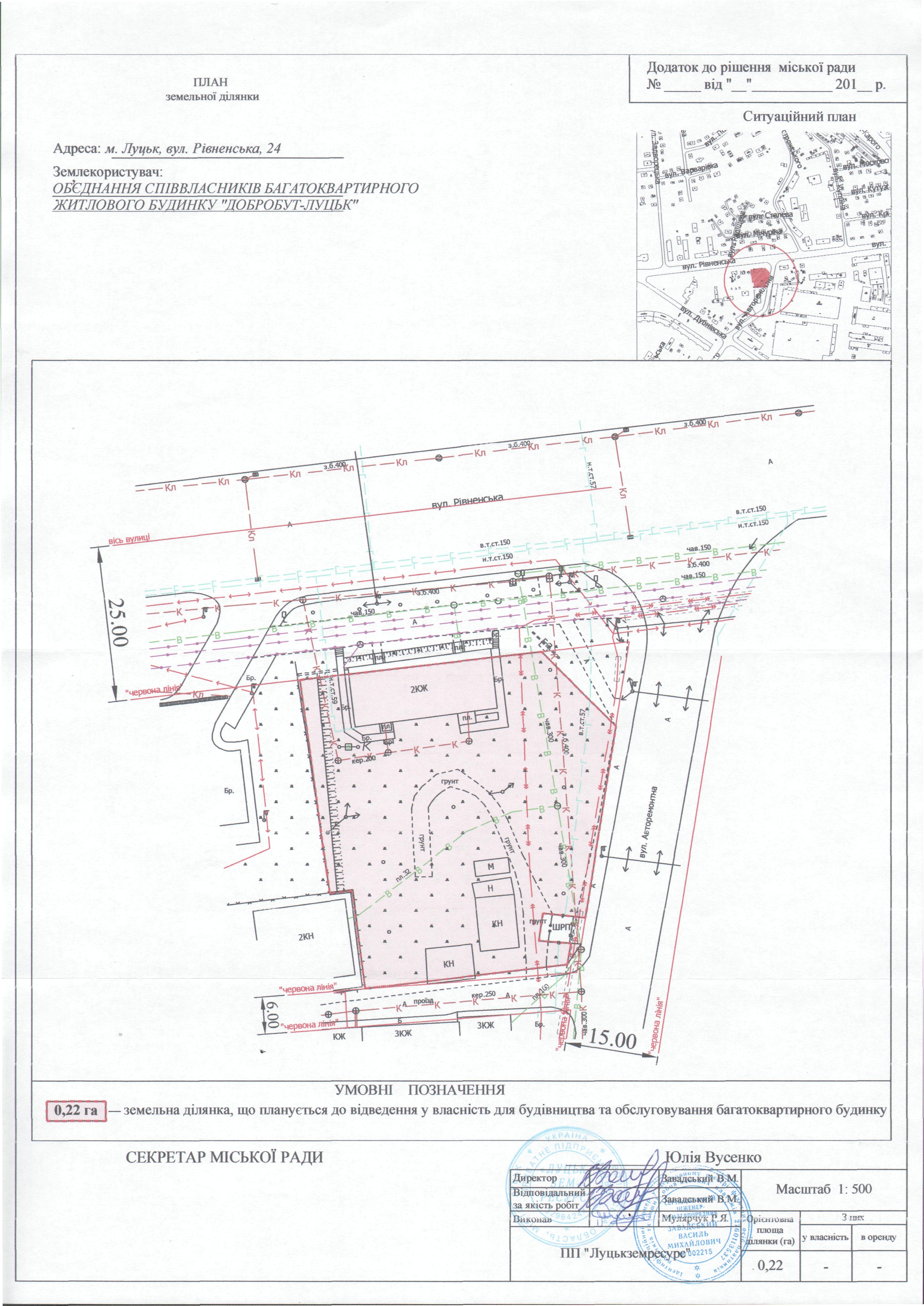 Депутати розглянули проект змін до рішення міської ради від 30.03.2016 № 5/31 «Про надання ОСББ «Добробут−Луцьк» дозволу на розроблення проекту землеустрою щодо відведення у власність земельної ділянки для будівництва та обслуговування багатоквартирного будинку на вулиці Рівненській, 24.