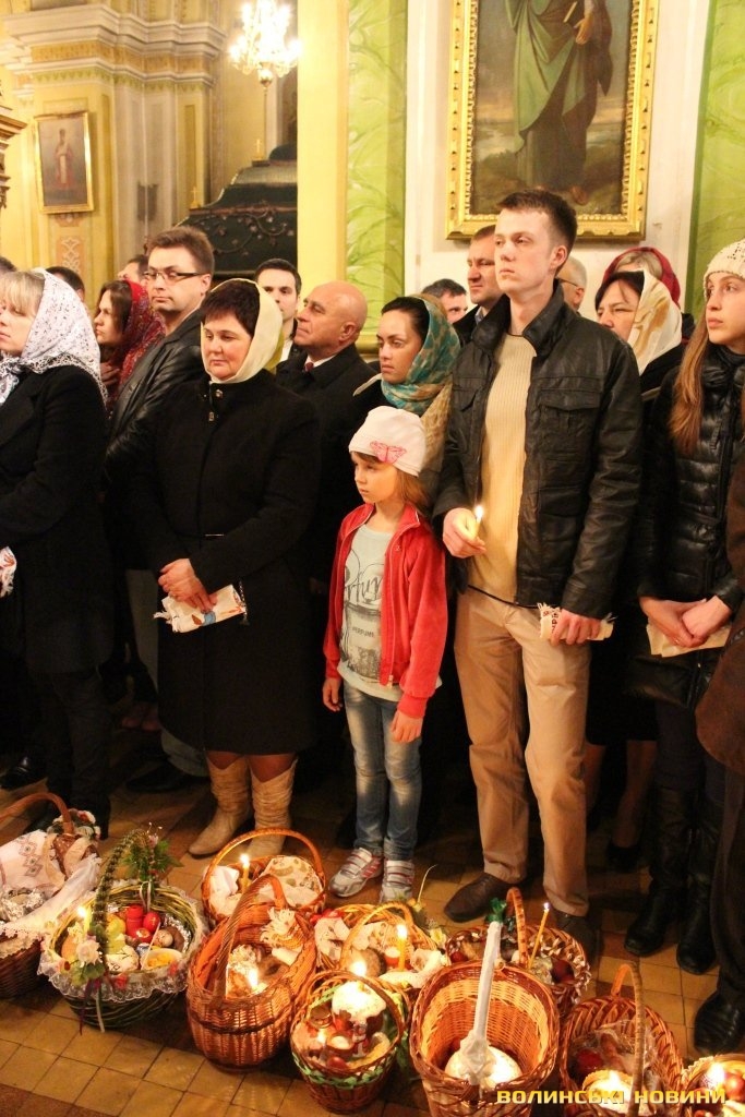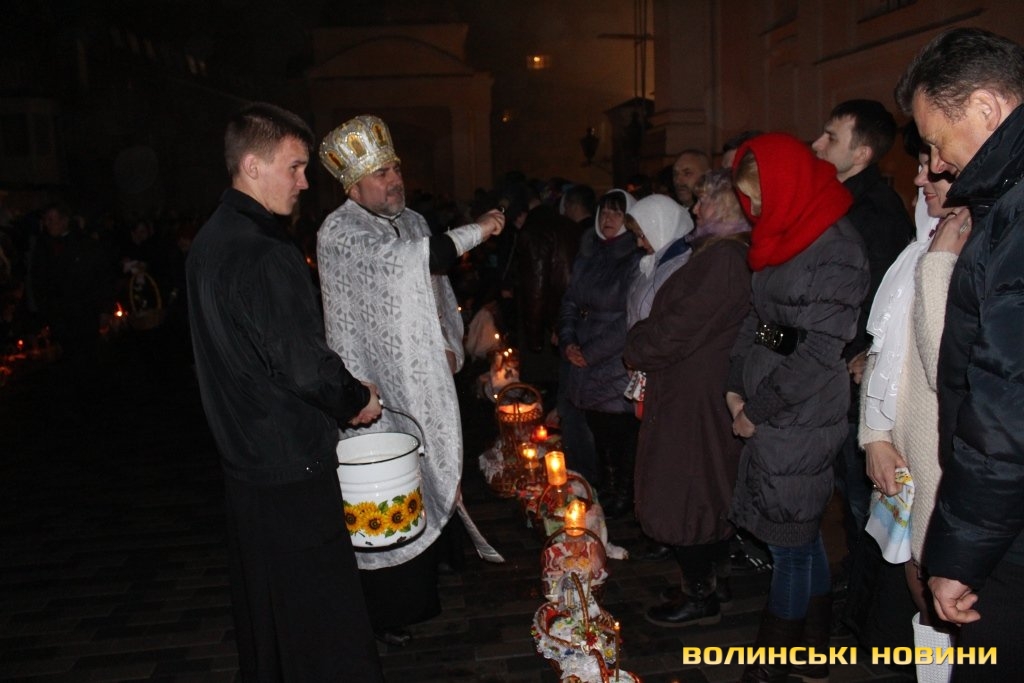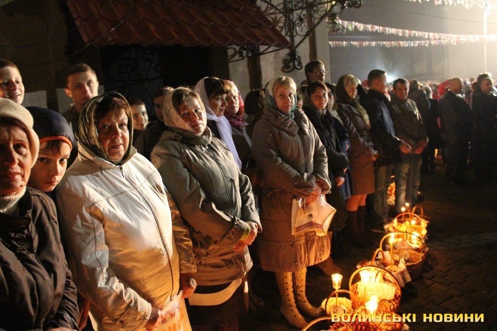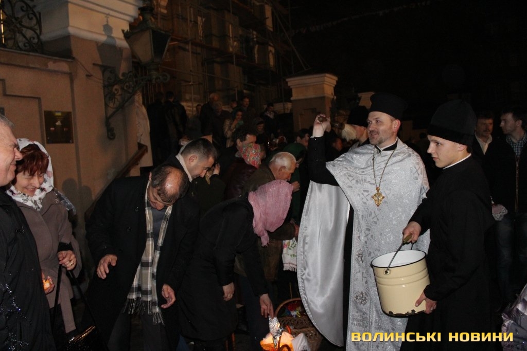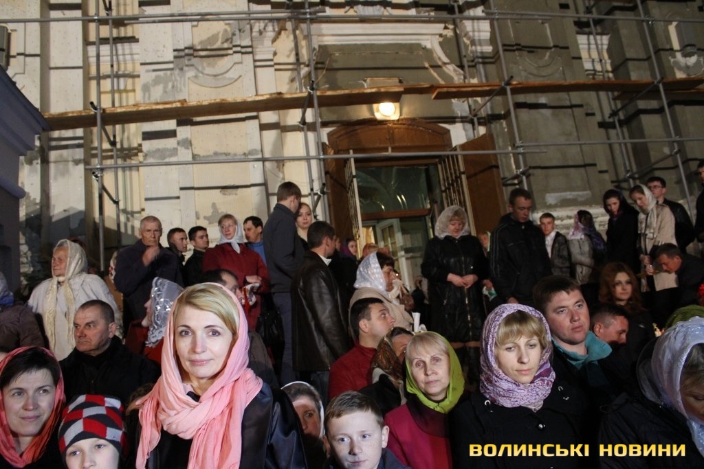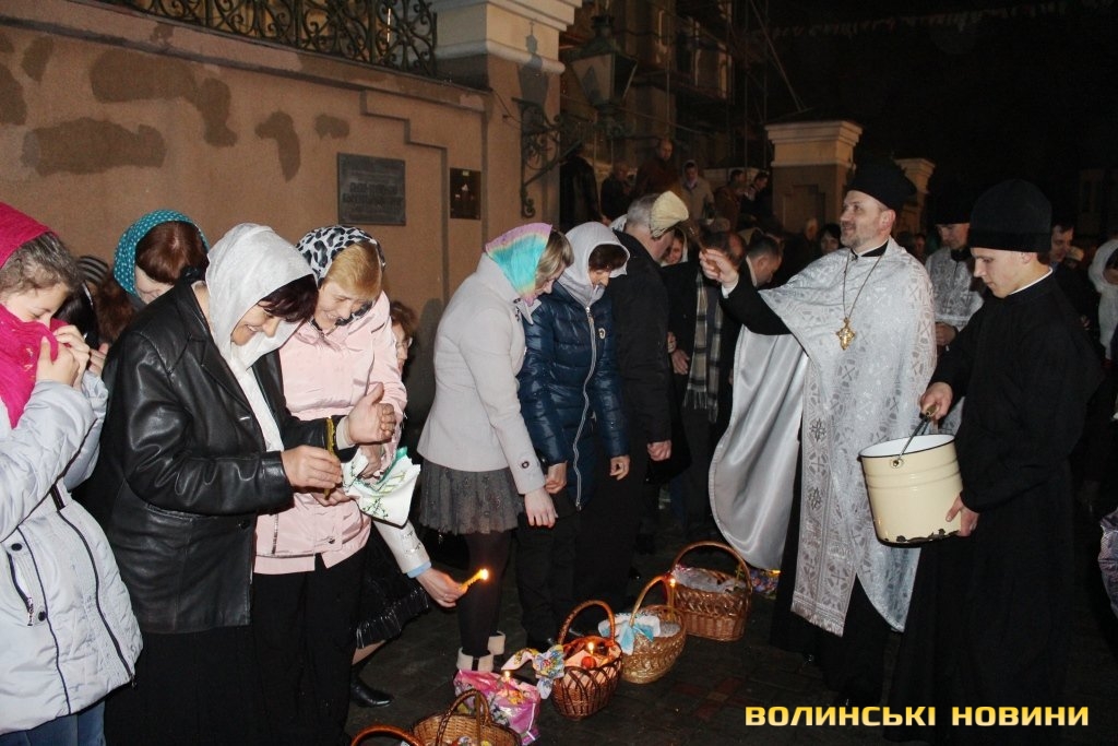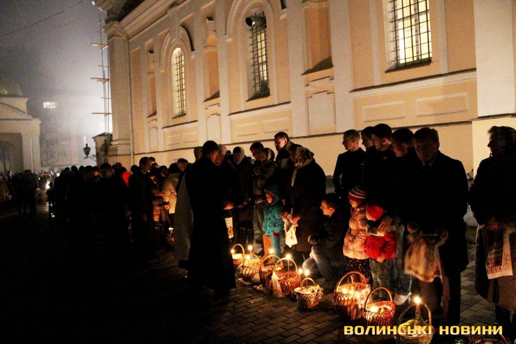 Святкова літургія та освячення пасок відбулися у ніч на 20 квітня у Свято-Троїцькому кафедральному соборі у Луцьку. Для того, щоб відзначити найголовніше свято християн східного обряду, у соборі зібралися сотні лучан.