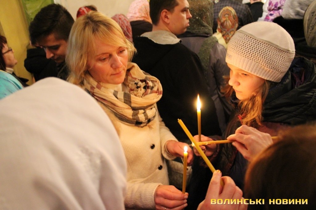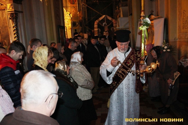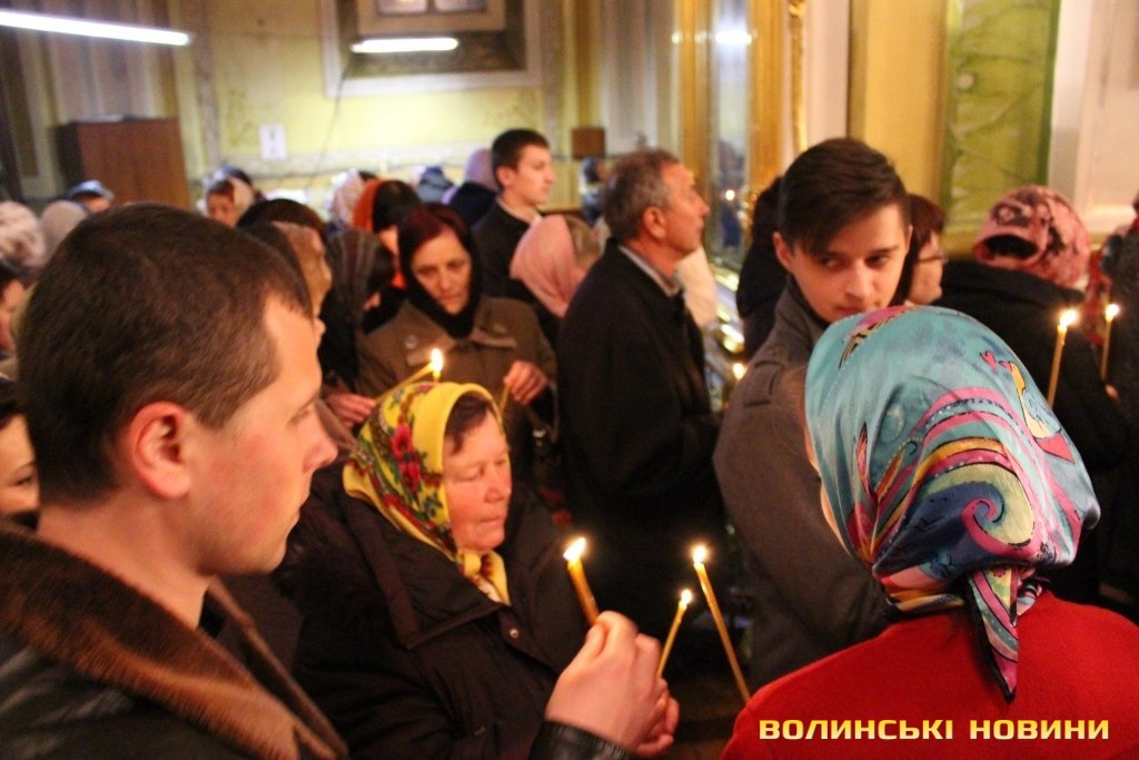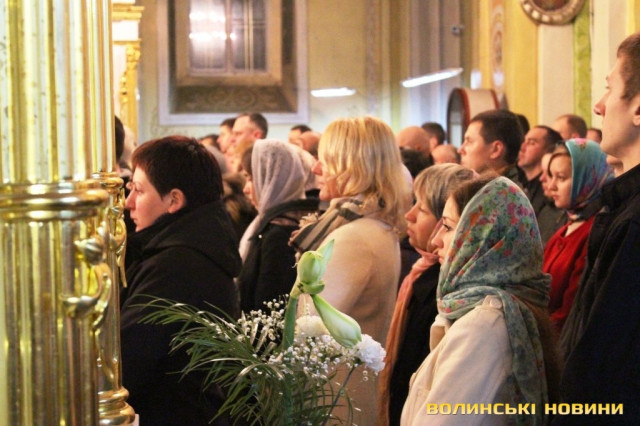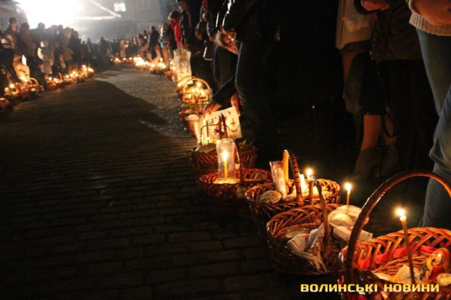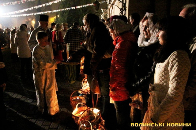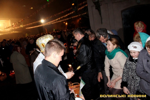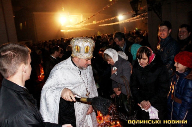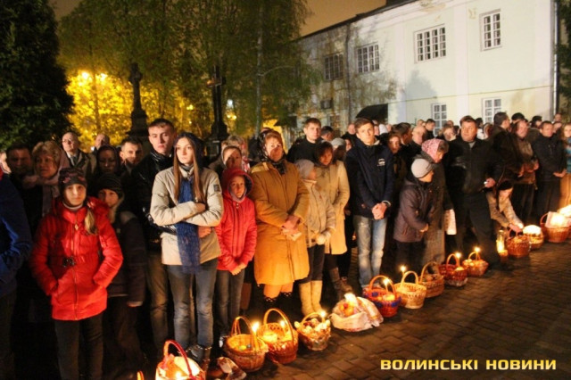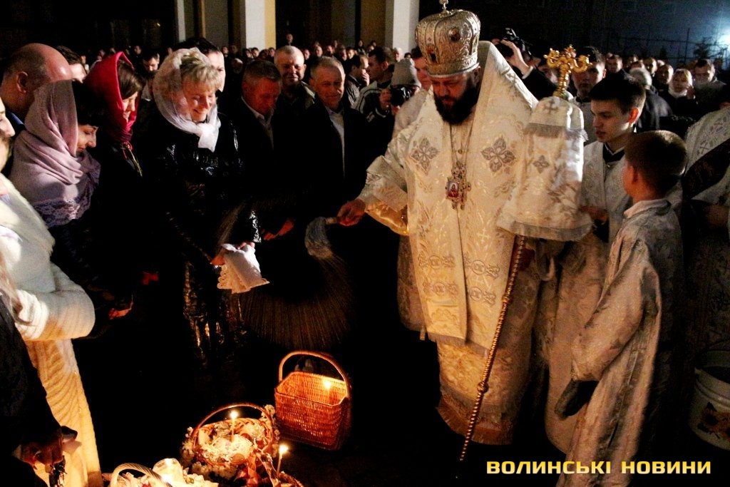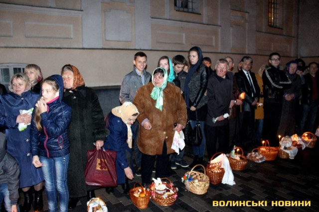 Святкова літургія та освячення пасок відбулися у ніч на 20 квітня у Свято-Троїцькому кафедральному соборі у Луцьку. Для того, щоб відзначити найголовніше свято християн східного обряду, у соборі зібралися сотні лучан.
