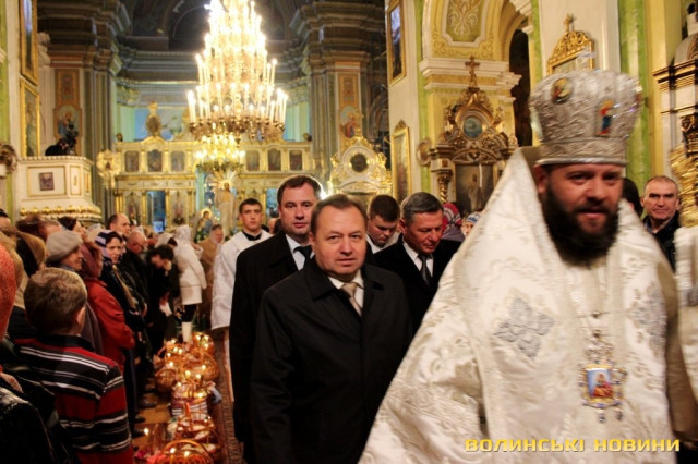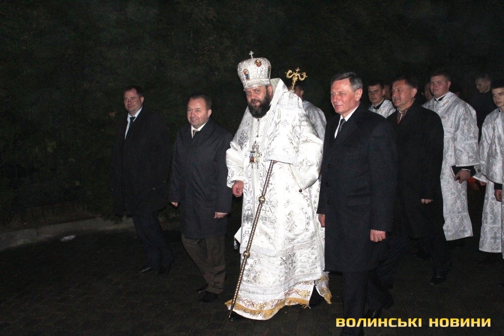 З вітальними словами до лучан після звершення богослужіння звернулися присутні можновладці – голова облдержадміністрації Григорій Пустовіт, голова обласної ради Валентин Вітер та Луцький міський голова Микола Романюк.