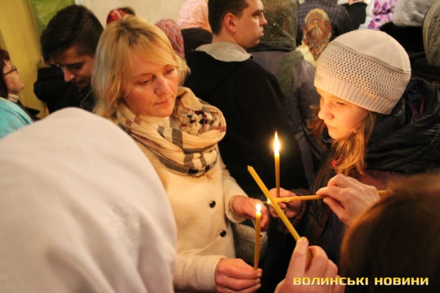 Під час богослужіння благодатний вогонь, щойно привезений із Єрусалиму, владика роздав вірянам – запалити свічку від чудотворного вогню міг кожен охочий.