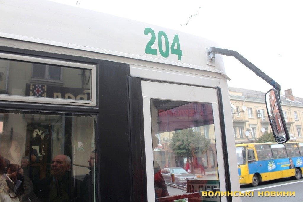 Озвучення руху тролейбуса:На урочисту демонстрацію новації прийшов Луцький міський голова Микола Романюк. У нього запитали, чому проекти, які потрібні для незрячих, з потугами впроваджуються в місті, втім, належно не реалізовуються.