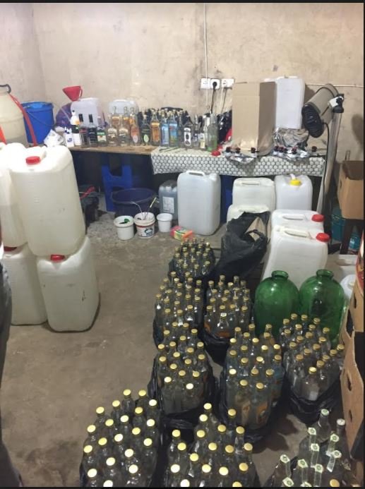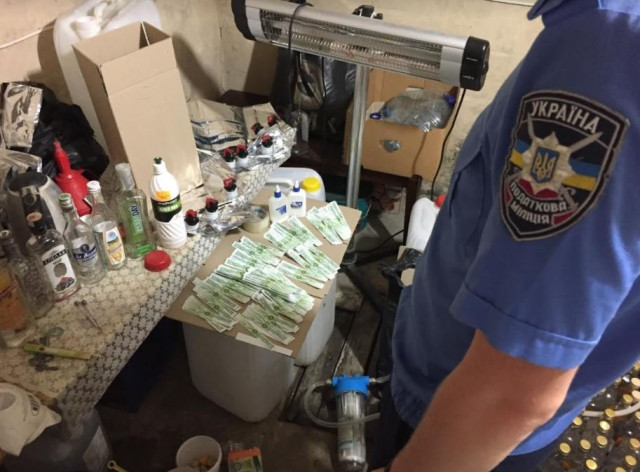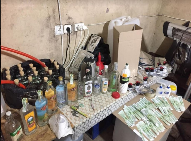 Як встановили правоохоронці, в місці проведення огляду було налагоджено незаконне виробництво фальсифікованих алкогольних напоїв. Сурогатний алкоголь розливався у пляшки з етикетками популярних горілчаних брендів та маркувався марками акцизного податку з явними ознаками підробки.