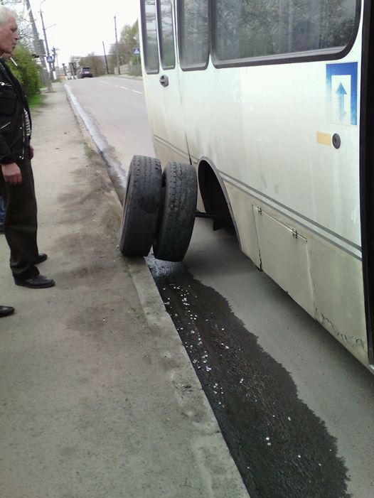 На ходу відлетіло колесо у міжміській маршрутці, яка везла пасажирів через Луцьк, йдеться в дописі у Фейсбуці пасажирки маршрутки Галини Гарбарук.