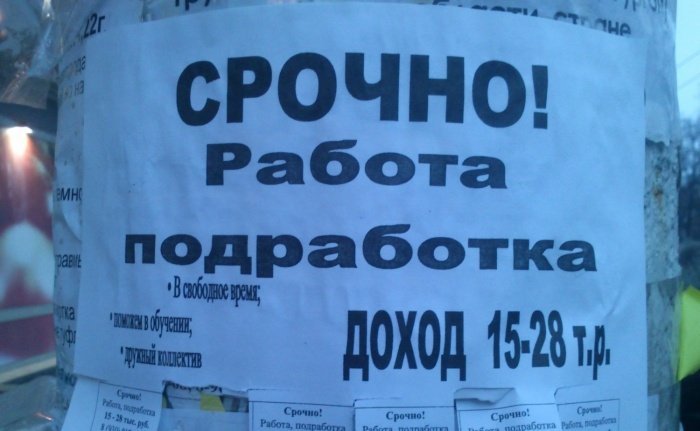 Інший вид оголошень стосується роботи із неофіційним працевлаштуванням та тіньовою заробітною платою. Аби вияснити умови працевлаштування, представники центру зайнятості вдалися до прийому «таємний покупець» й телефонували до рекламодавців самотужки, мовляв, шукають роботу. Таким чином, вдалося з’ясувати, що 40% роботодавців пропонують нелегальну працю із неофіційною зарплатнею. Понад 30% - пропонують офіційне працевлаштування за бажанням робітника. 9% роботодавців взагалі уникали відповідей на запитання про заробітну плату та офіційне працевлаштування й пропонували особисту співбесіду для «уточнення всіх деталей».