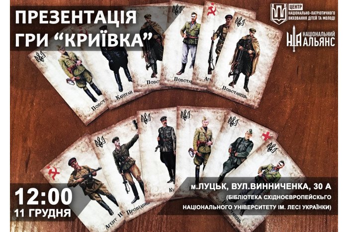 Презентація гри «Криївка» відбудеться у Луцьку 11 грудня, повідомляють на сайті міськради.