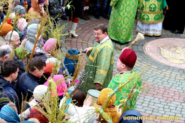 Біля Свято-Троїцького кафедрального собор велелюдно ще із самісінького ранку. Так, із гарно прикрашеними букетиками із верби та весняних квітів лучани святкують день входження Христа до Єрусалиму. Традиційно, освячене у церкві вербове гілля зберігають протягом усього року. Християни щиро вірують, що воно має цілющу силу і вбереже оселю від лиха.