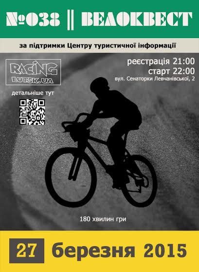 Лучан запрошують на 180 хвилин приєднатися до захоплюючих пригод на велосипеді разом з організаторами велоквесту. Перший весняний велоквест - розминка після довгої зими та нова порція завдань від Racing Lutsk відбудеться 27 березня у Луцьку.