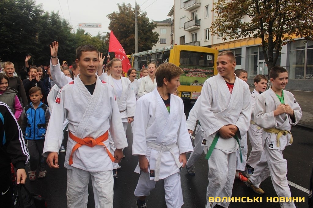 Святкове дійство розпочалося із урочистої ходи представників усіх спортивних федерацій області із Театрального майдану Луцька до стадіону «Авангард».